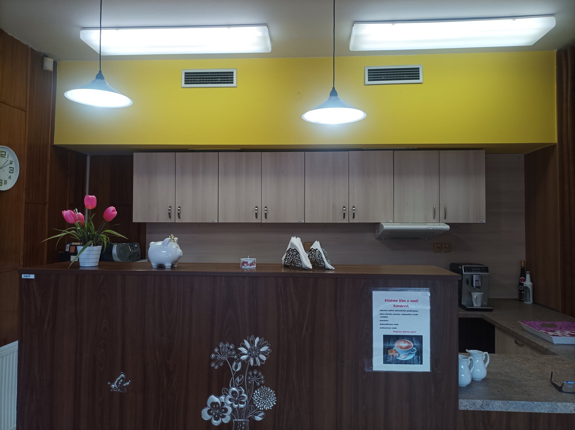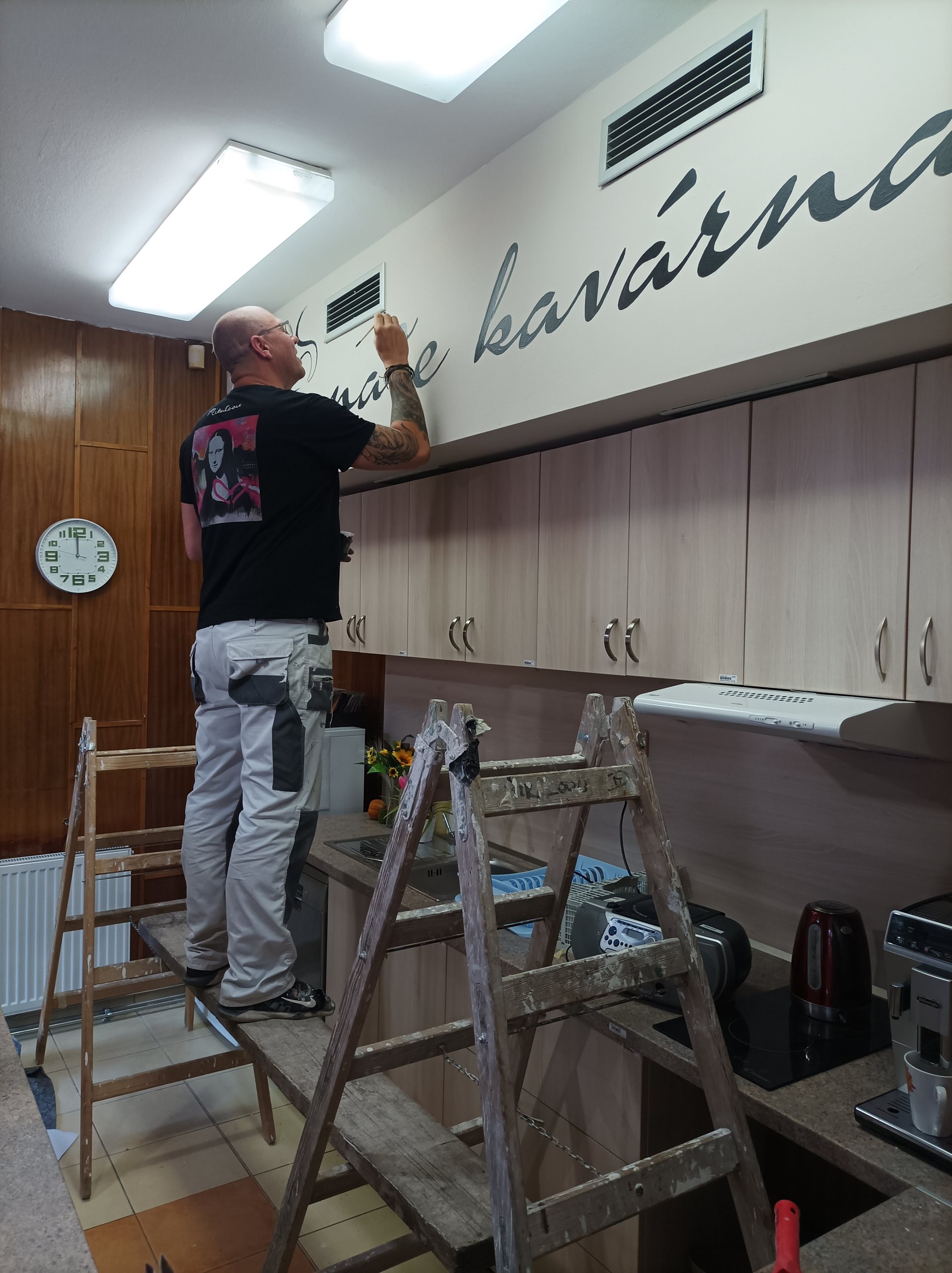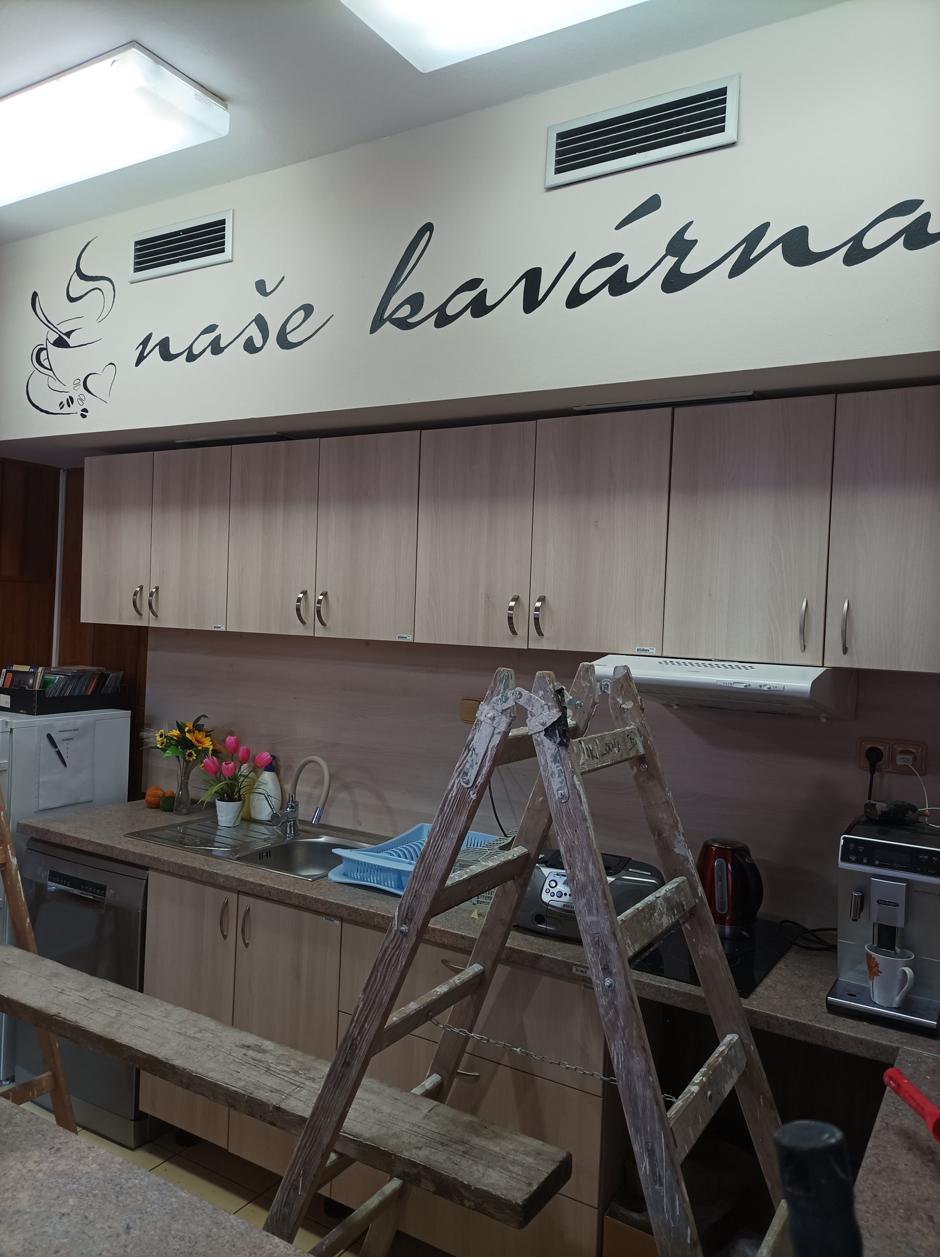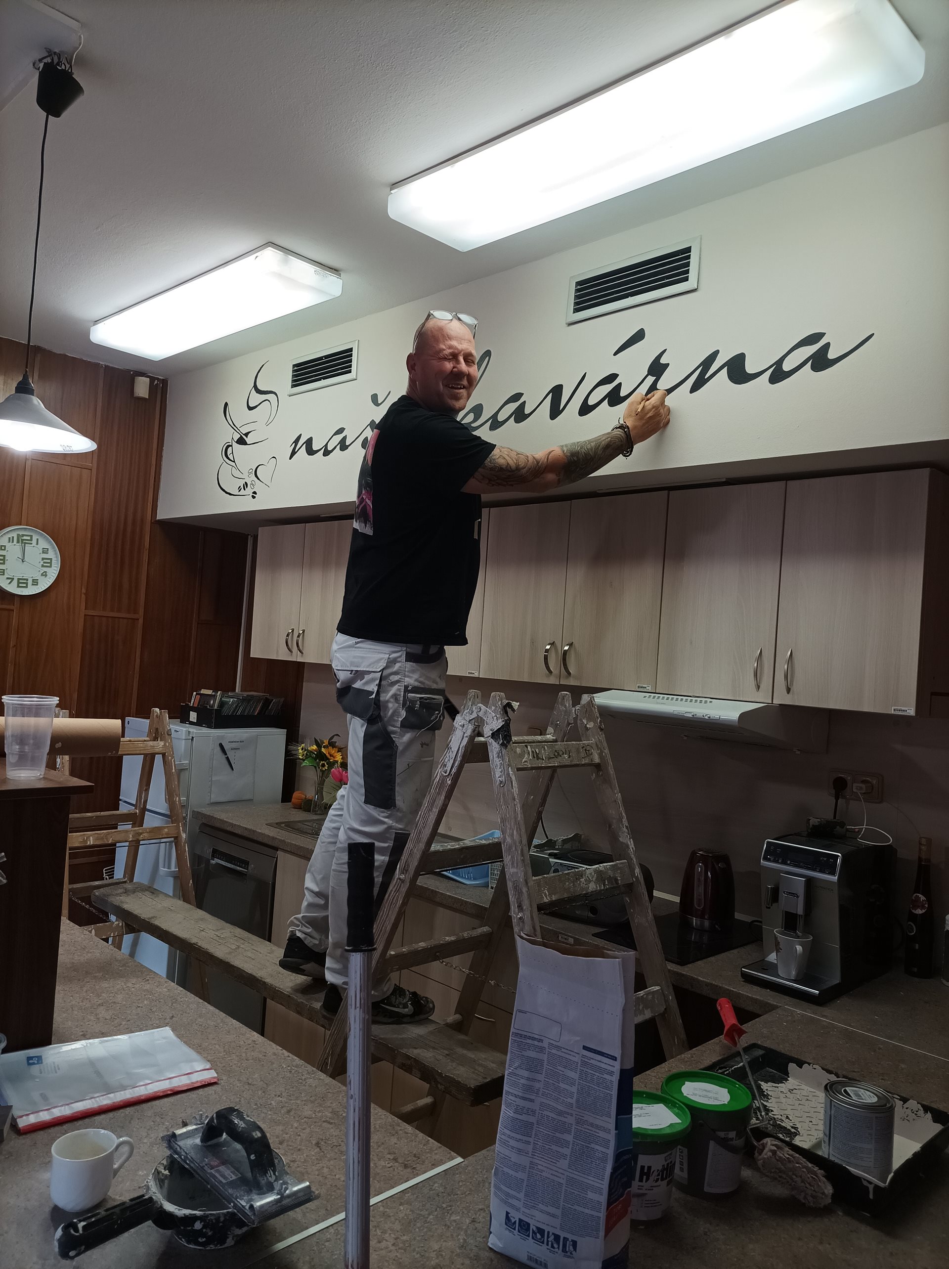 Děkujeme panu Michalu Dvořákovi za vymalování kavárny a krásně vyobrazený nápis „Naše kavárna,“ který se setkal s nadšenými ohlasy seniorů a jejich návštěv v tomto oblíbeném prostoru.