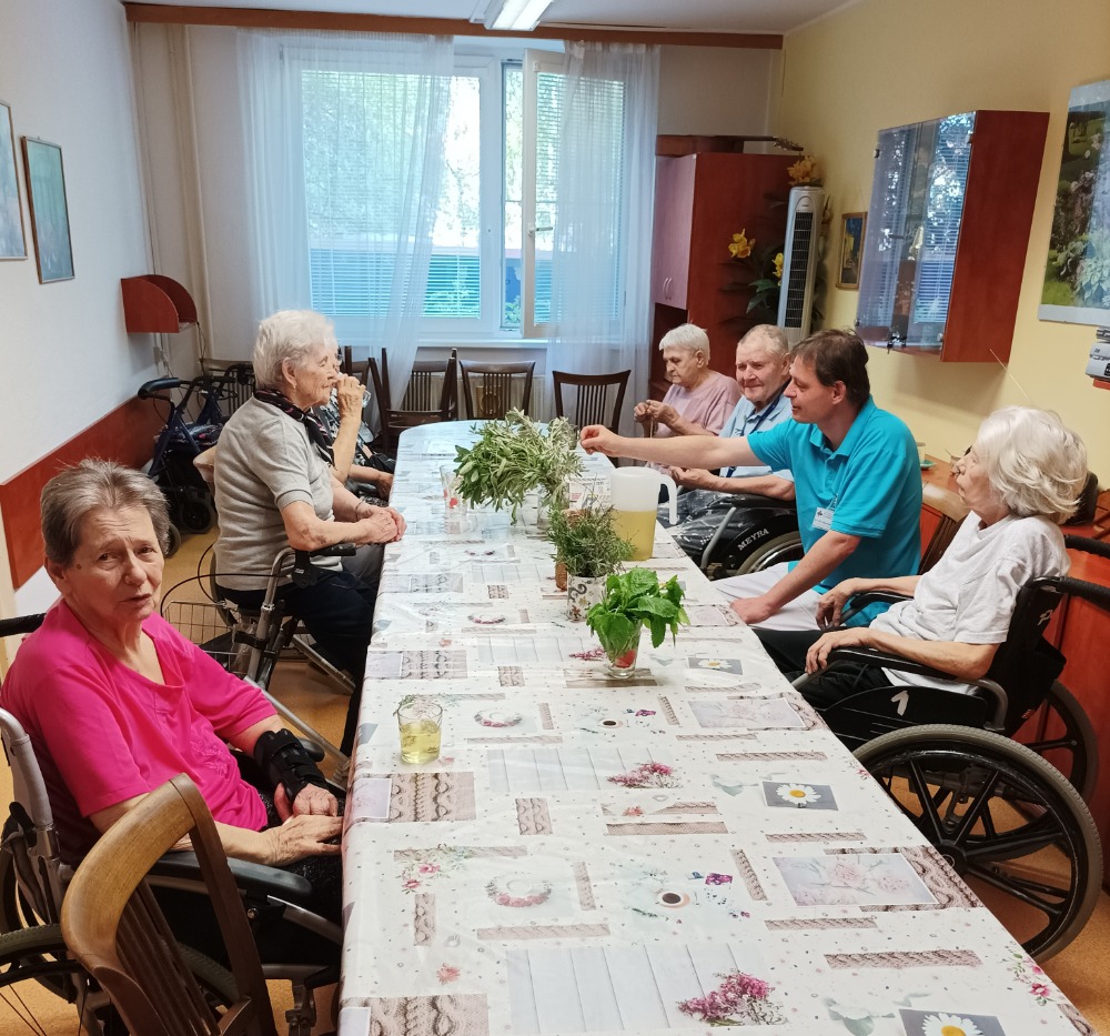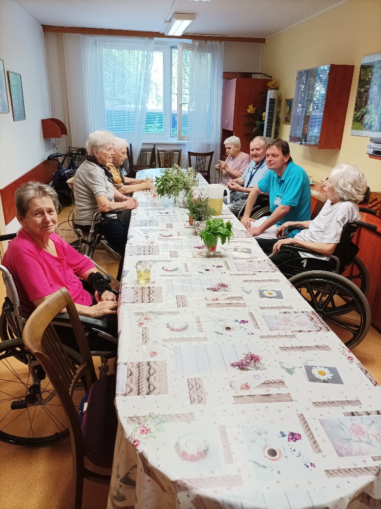 Dnešní dopolední aktivizace byla věnovaná bylinkám . Jejich vůni uživatelé poznávali , mohli si z blízka prohlédnout jak která bylinka vypadá, jaké má listy, jak voní a společným povídáním přijít na to, kde ji je možné použít a k jakému účelu slouží.
