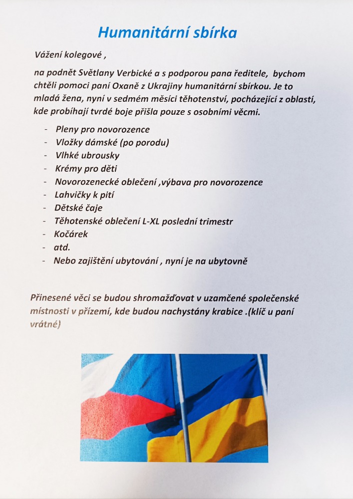 Domov seniorů Prostějov p.o. se aktivně podílel na organizaci humanitární sbírky pro slečnu Oxanu, která pochází z válkou postižené oblasti Ukrajiny a nyní je naprosto bez prostředků. Ukázala se solidarita jak zaměstnanců ,tak našich seniorů, kteří se připojili a přispěli tak potřebnému člověku v nouzi. Všem, co se jakkoliv podíleli na této sbírce patří veliký dík!