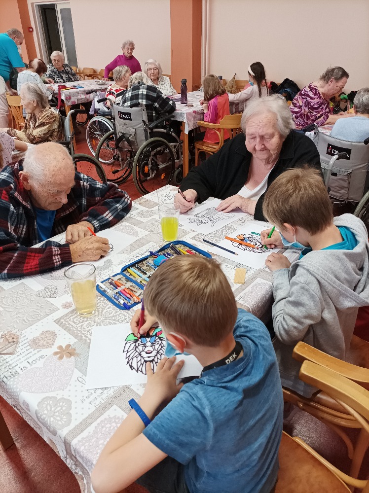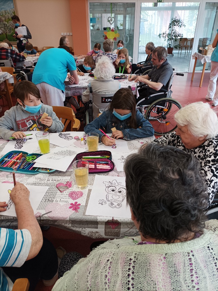 Opět nás navštívily děti z ZŠ Melantrichova , společně s uživateli vymalovávali obrázky ,společně se radili o barvách a vzájemně si pomáhali .Výsledek byl opravdu krásný.