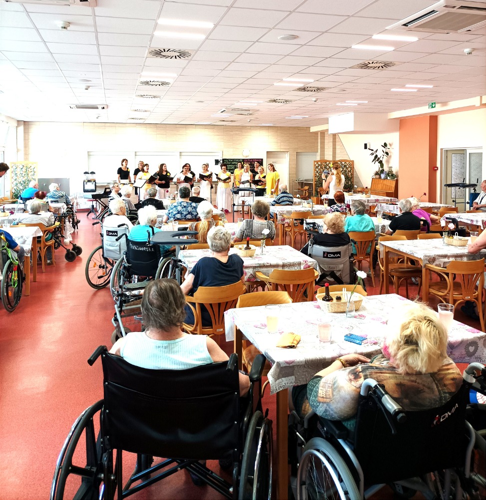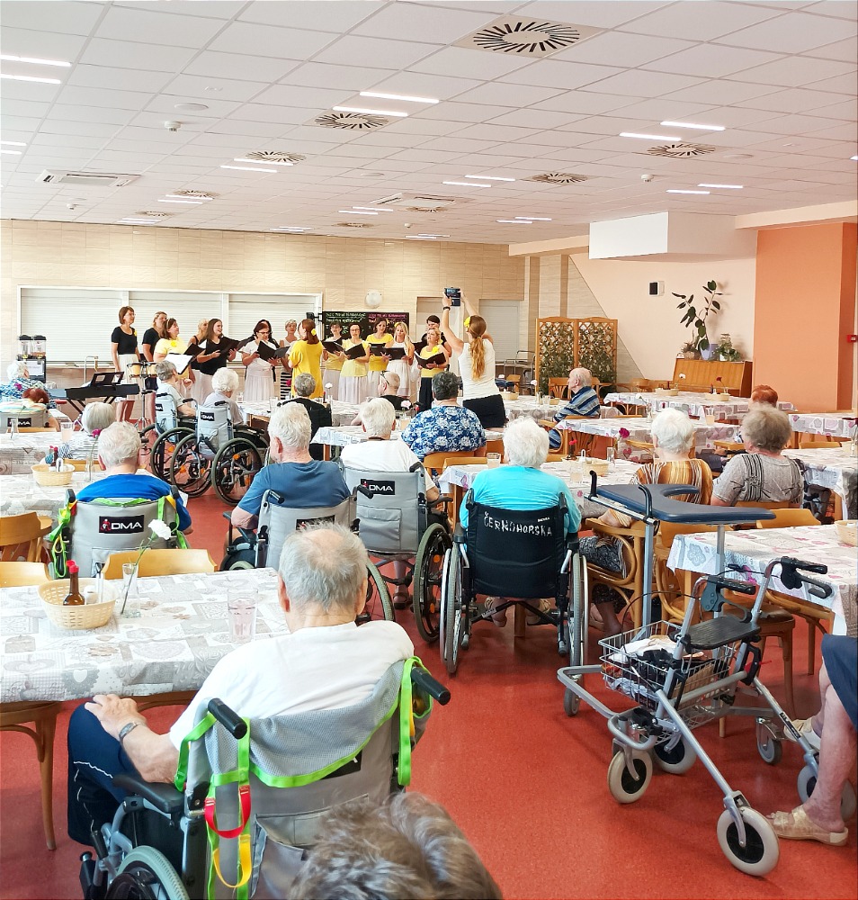 Krásné vystoupení pěveckého sboru NOTA BENE se opravdu povedlo. Naši uživatelé i přes horko, které v ten den panovalo si vystoupení náležitě užili . Začlení klavíru a houslí ke krásnému zpěvu, bylo naprosto dokonalé. Moc děkujeme .