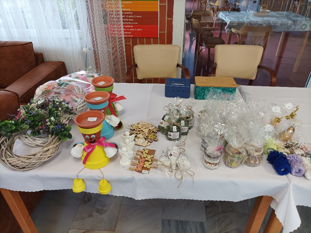 Dne 26.10.2022 jsme uspořádali prodejní akci našich výrobků ,mezi které patřily domácí marmelády, bylinné čaje a soli, keramika, svícny ,ozdobné panenky z květináčů, věnečky, dřevěné magnetky atd. ,pro velký ohlas plánujeme ji znovu v budoucnu zopakovat.