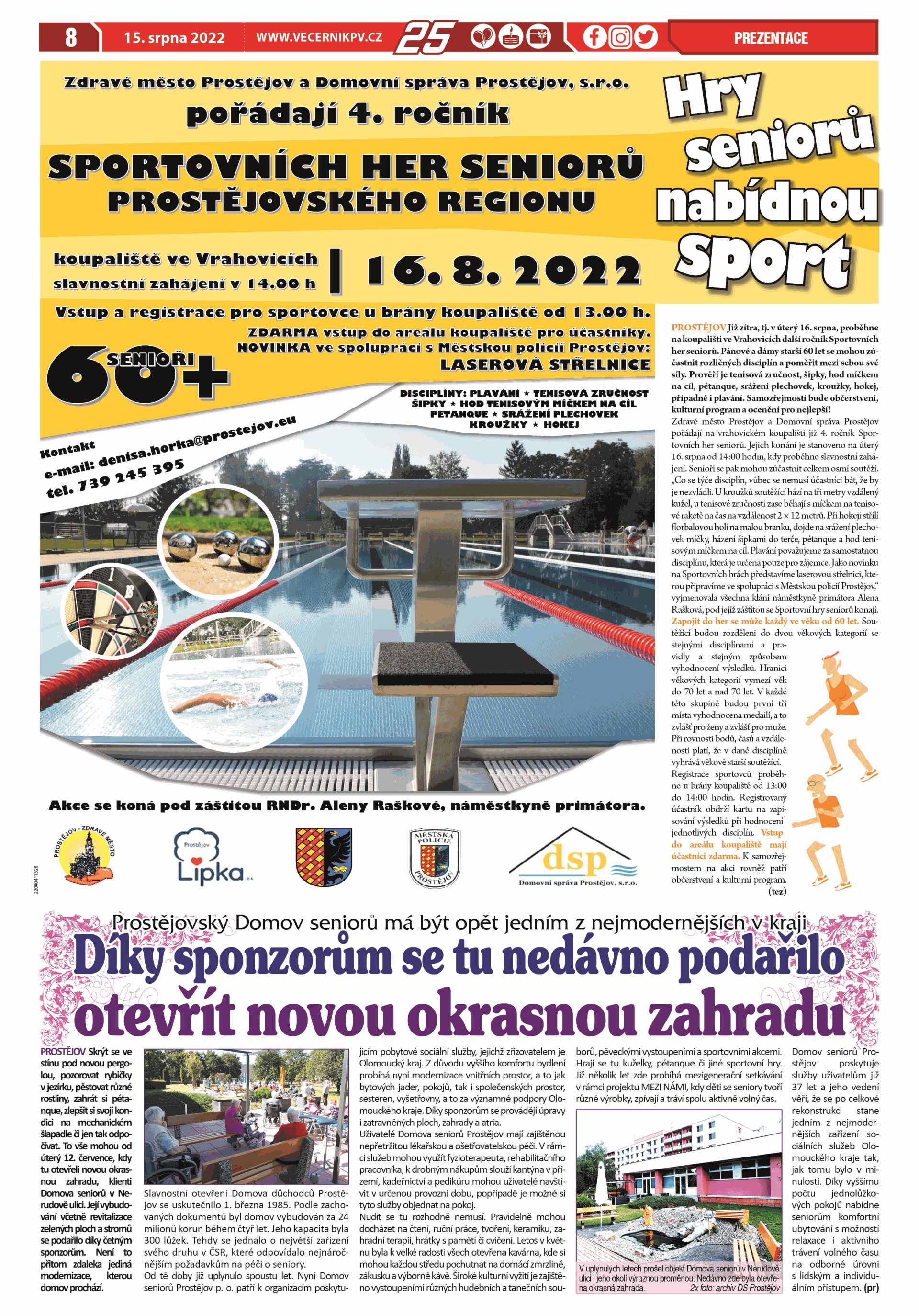 PROSTĚJOVSKÝ VEČERNÍK - ČLÁNEK O DOMOVĚ SENIORŮ PROSTĚJOV P.O.