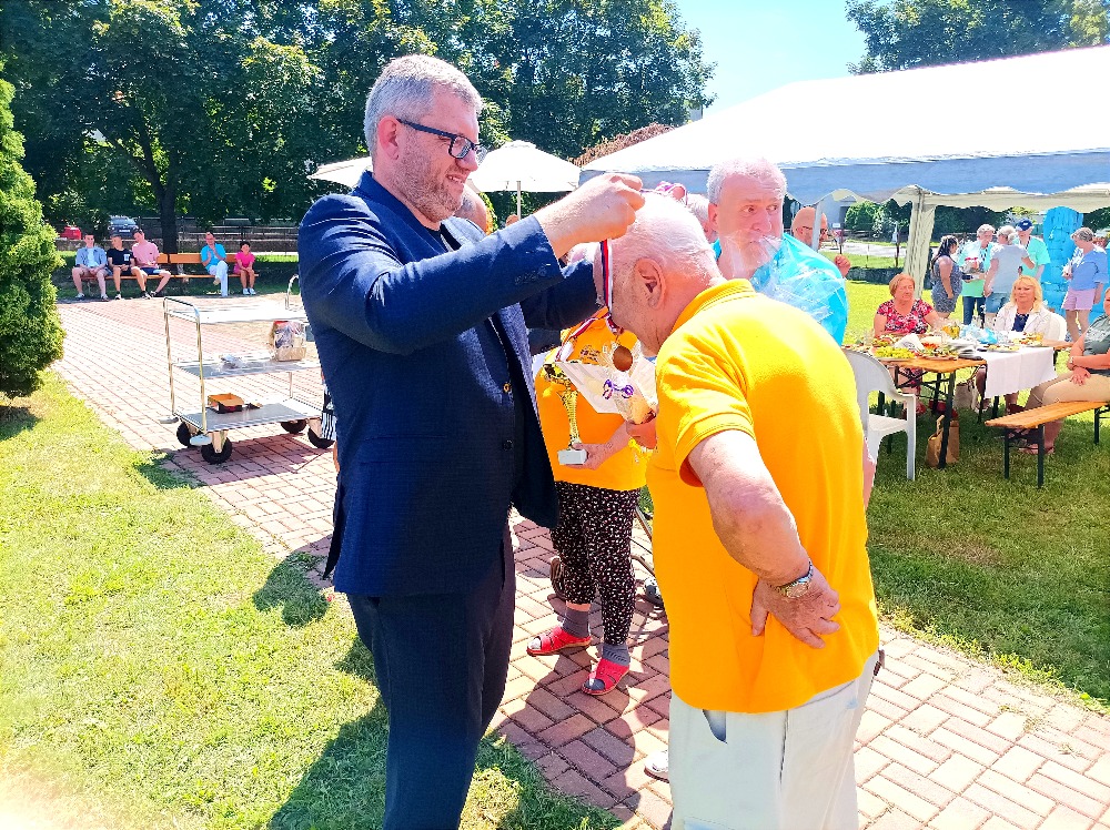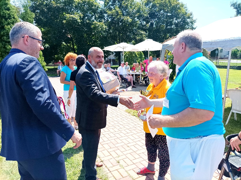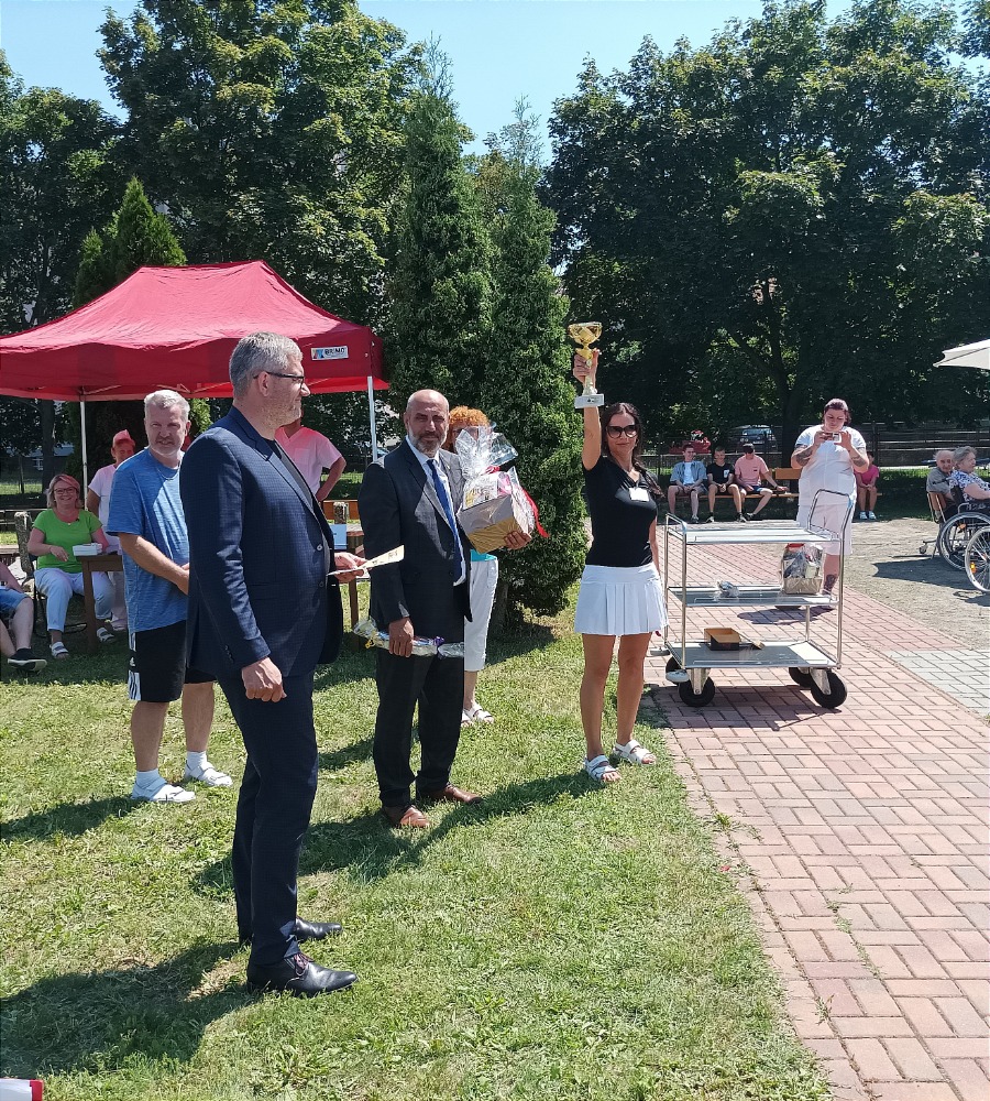 Dne 23.6.2022 se v Domově seniorů Prostějov konal další ročník Sportovních her. Účastnilo se 9 týmů ze 7 organizací Olomouckého kraje. DS Prostějov, DPS Chválkovice, Domov u Třebůvky Loštice, CSSPV, DPS Červenka, DPS Tovačov, DPS Javorník. Soutěžilo se v 6 disciplínách, 3 byly sportovní a 3 vědomostní a k procvičení smyslového vnímání. Všichni účastníci do toho dali maximum a užili si jak soutěžení, tak i spoustu výborného jídla, jako domácí vdolečky, zákusky Rafaelo, k osvěžení byla domácí zmrzlina podávaná v kavárně DS Prostějov, výborné byly i domácí klobásy připravované na grilu, či guláš, který si všichni účastníci mohli vychutnat venku pod stany. O zábavu se postaral DJ Martin, program pokračoval i vystoupením taneční skupiny Adora Dance, či jízdou na koni za asistence instruktorky paní Skokánkové z Hrubé Vody. Jako hosté se zúčastnili Mgr. Ivo Slavotínek - 1.náměstek OK, Mgr. František Jura - primátor statutárního města PV, RNDr. Alena Rašková - 2. náměstkyně primátora města PV, Bc.Mgr. Zbyněk Vočka - pověřen plněním úkolů vedoucího odboru soc. věcí OK, Mgr. Nadězda Nováková z odboru soc. věcí OK, Mgr. Helena Vránová - ředitelka CSSPV, Mgr. Pavlína Jedličková - ředitelka SŠ Komenského PV, Ondřej Jurečka - ředitel DS u Třebůvky Loštice p.o., Ing. Jitka Richterová - ředitelka DS Javorník. Pan náměstek s panem primátorem se skvěle zhostili předávání cen všem účastníkům krásné poháry a medaile pro ty nejlepší soutěžící. Tento den byl úžasný pro všechny zúčastněné hlavně proto, že se sešli po dlouhé pauze, kdy nemohlo docházet k žádným společným akcím a o to více si odnesli zážitků a radosti.