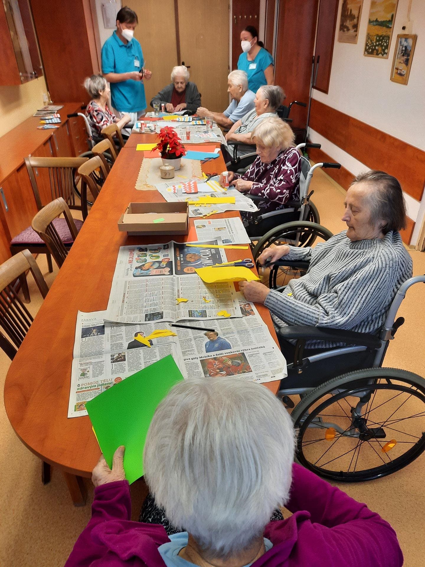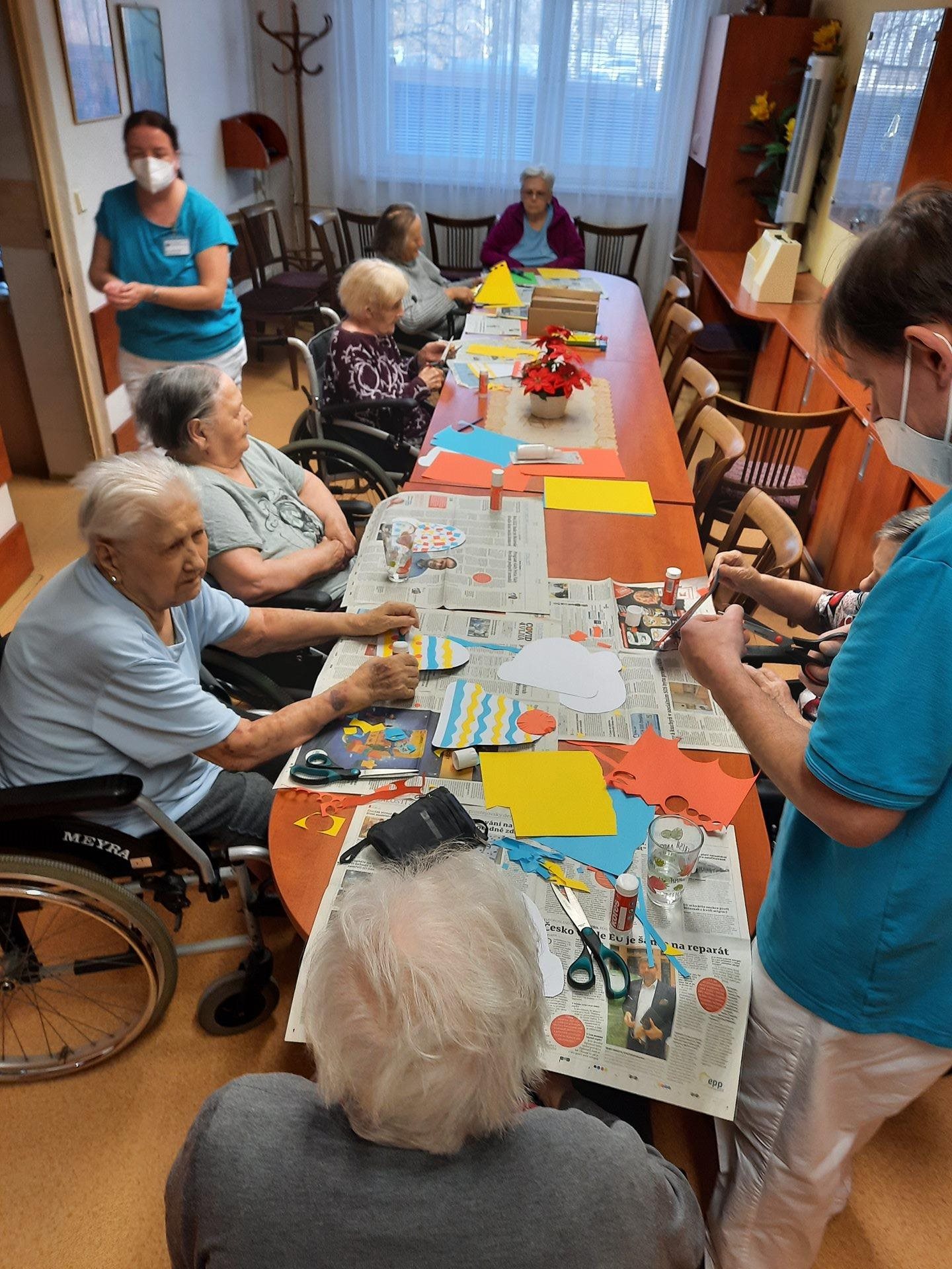 Krásné čepice pro děti ,které se účastní projektu MEZI NÁMI ,vyráběly naše seniorky s láskou.
