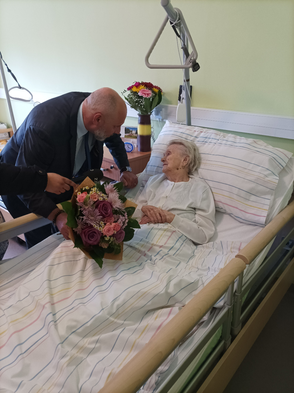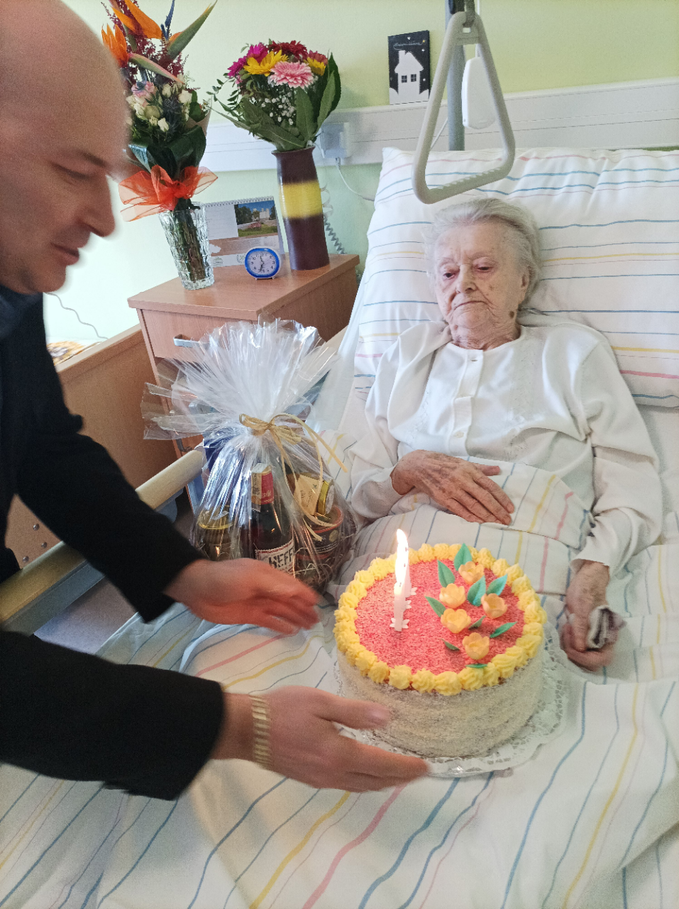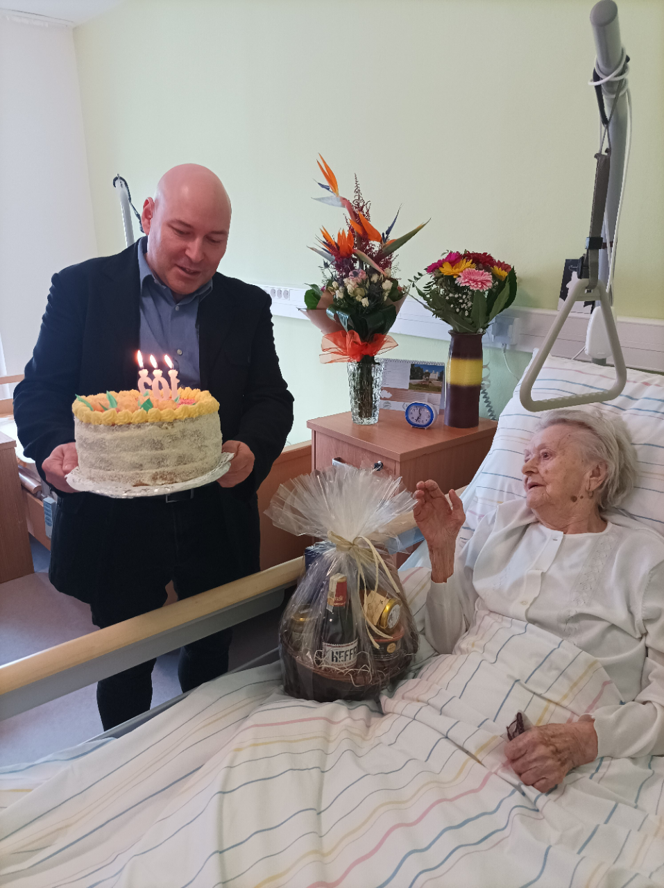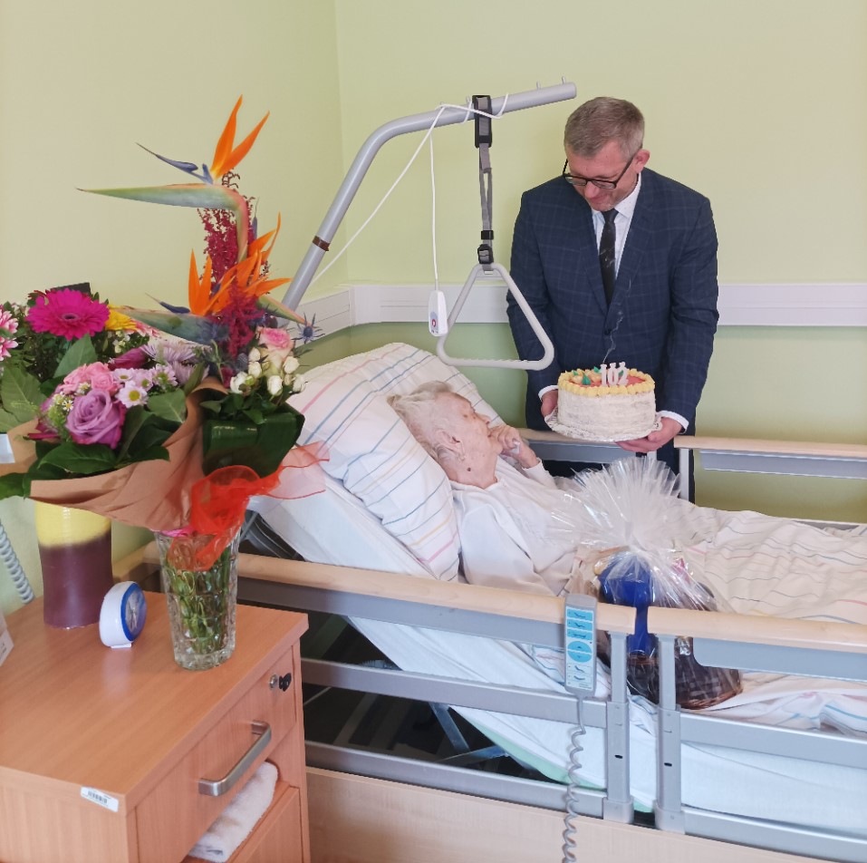 Dne 20.4.2023 oslavila naše uživatelka Marie krásných 102.let.v přítomnosti pana 1.náměstaka OLK pana Mgr.Ivo Slavotínka, pana primátora Mgr.Františka Jury a ředitele DS Prostějov p.o. pana Mgr. Marka Němce. Uživatelka dostala spoustu krásných dárků, nechyběly kytice, dort, dárkové koše i blahopřání zaměstnanců odd.,kterým patří také velké poděkování za péči. Paní Marii přejeme spoustu krásných dalších let.