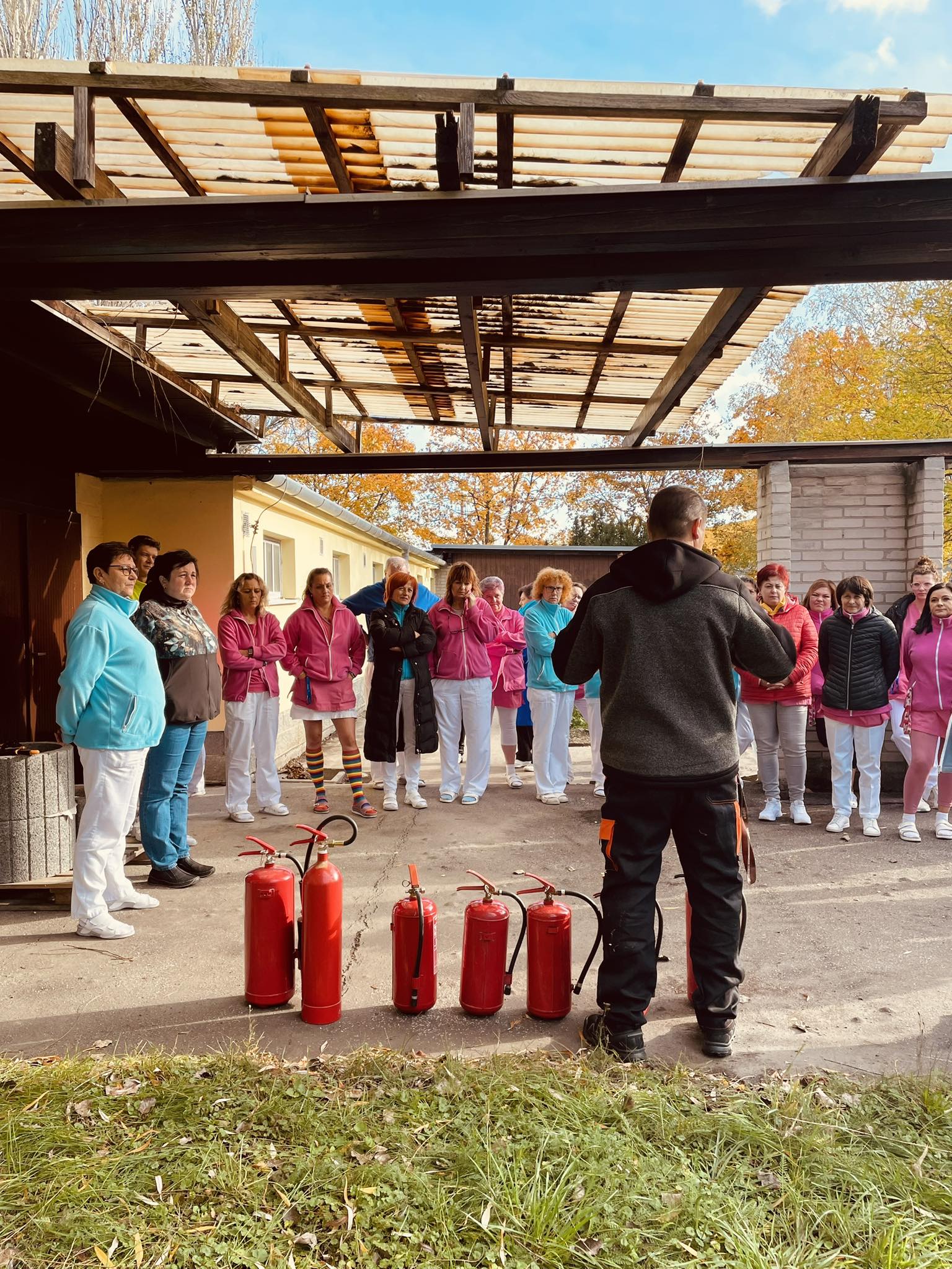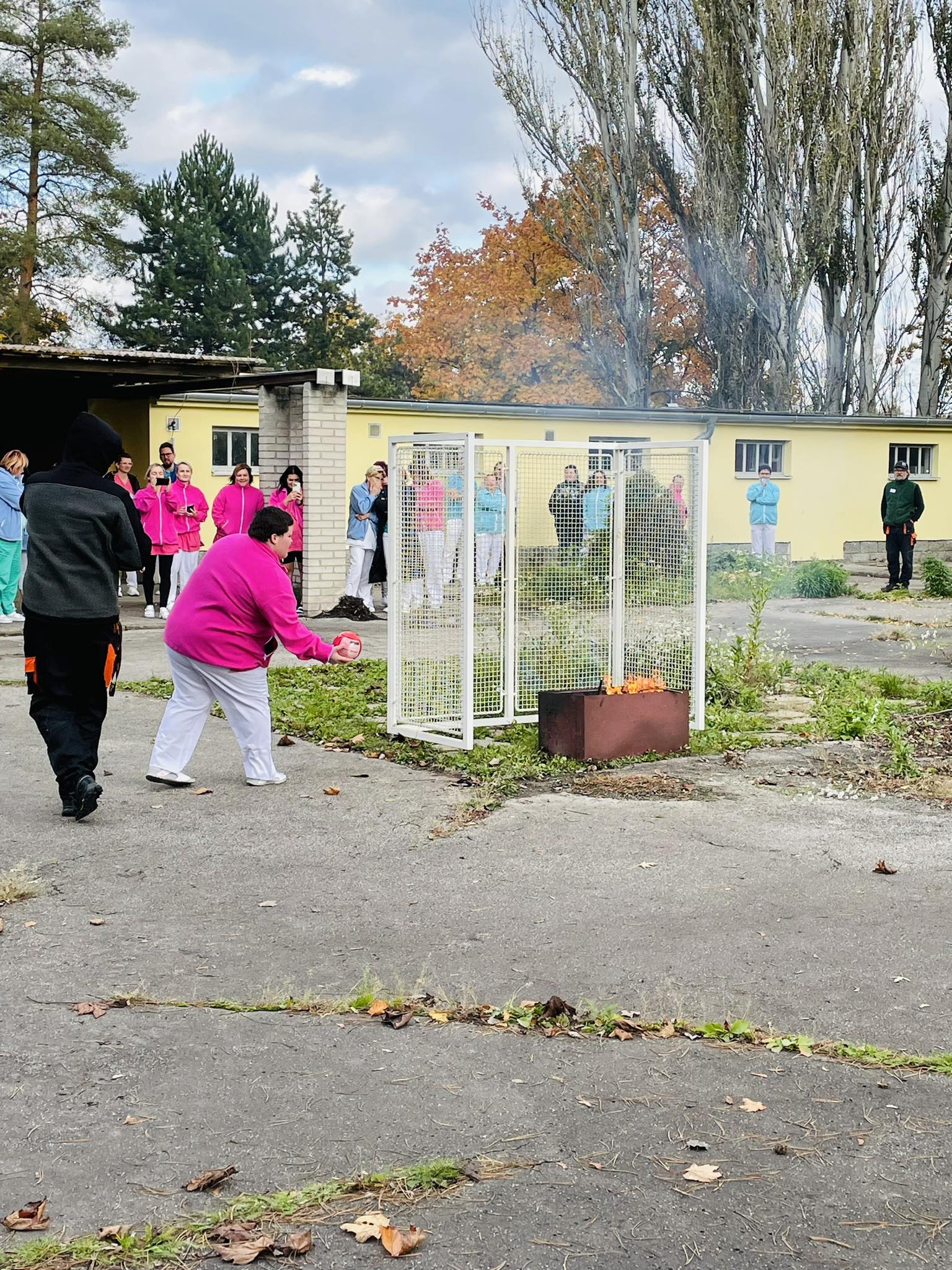 Dne 2.11.2023 se v Domově seniorů Prostějov p.o. pořádalo protipožární cvičení personálu. Probíhaly praktické ukázky hasící techniky. Na dobrovolnících byla zkoušena evakuace za pomocí evakuačních matrací, zkouška hašení požáru, jak hasícím přístrojem, tak hasícími koulemi.