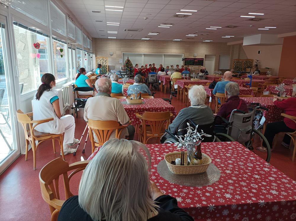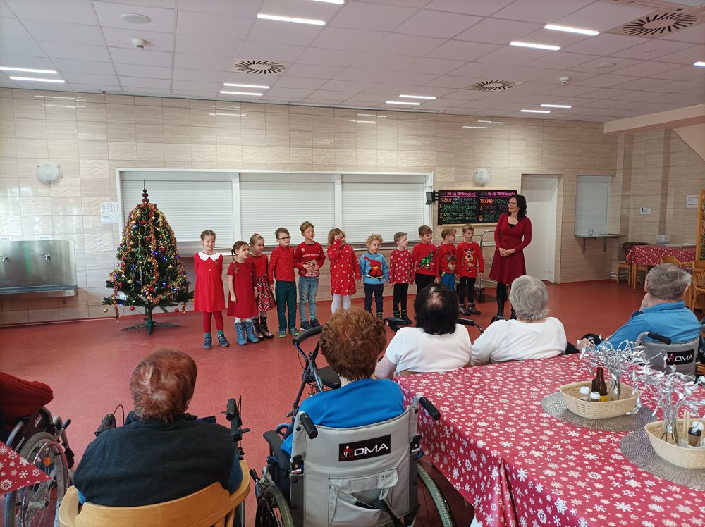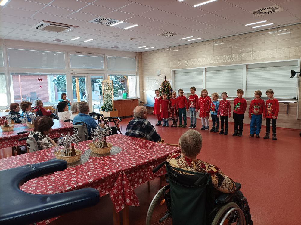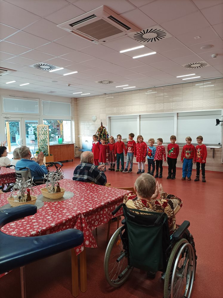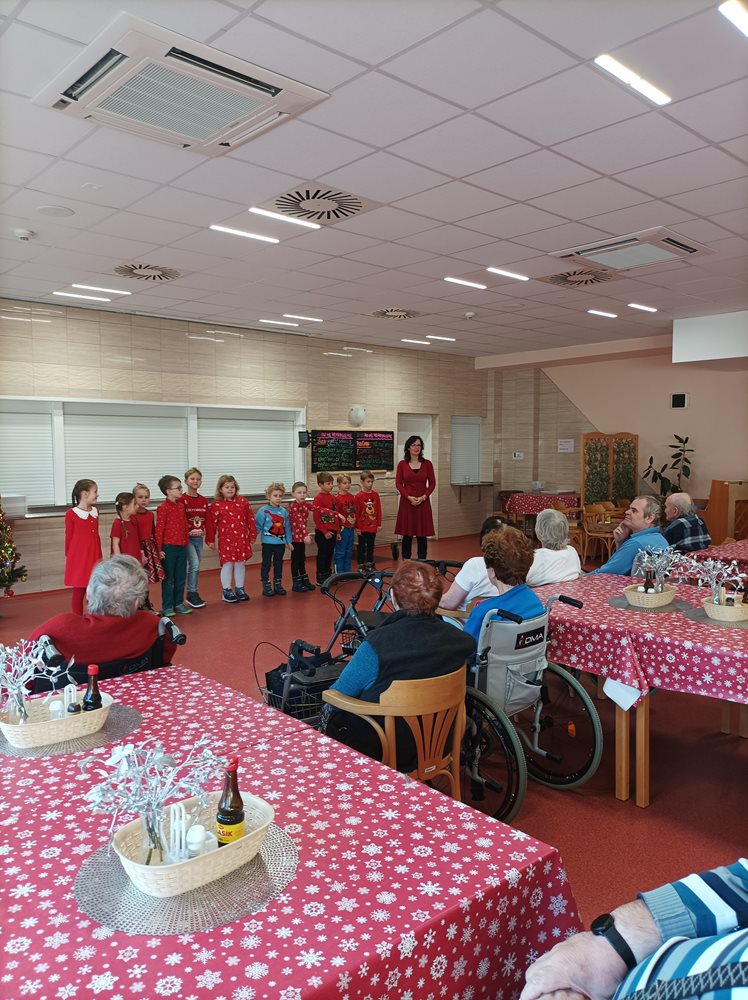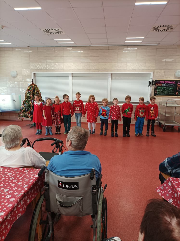 Dnes naše uživatele potěšily svým krásným vystoupením děti, ze Základní školy Q.Přinesly každému malý dáreček v podobě ručně vyrobeného andílka. Vystoupení se našim klientům velmi líbilo, navodily nám tu pravou vánoční atmosféru.