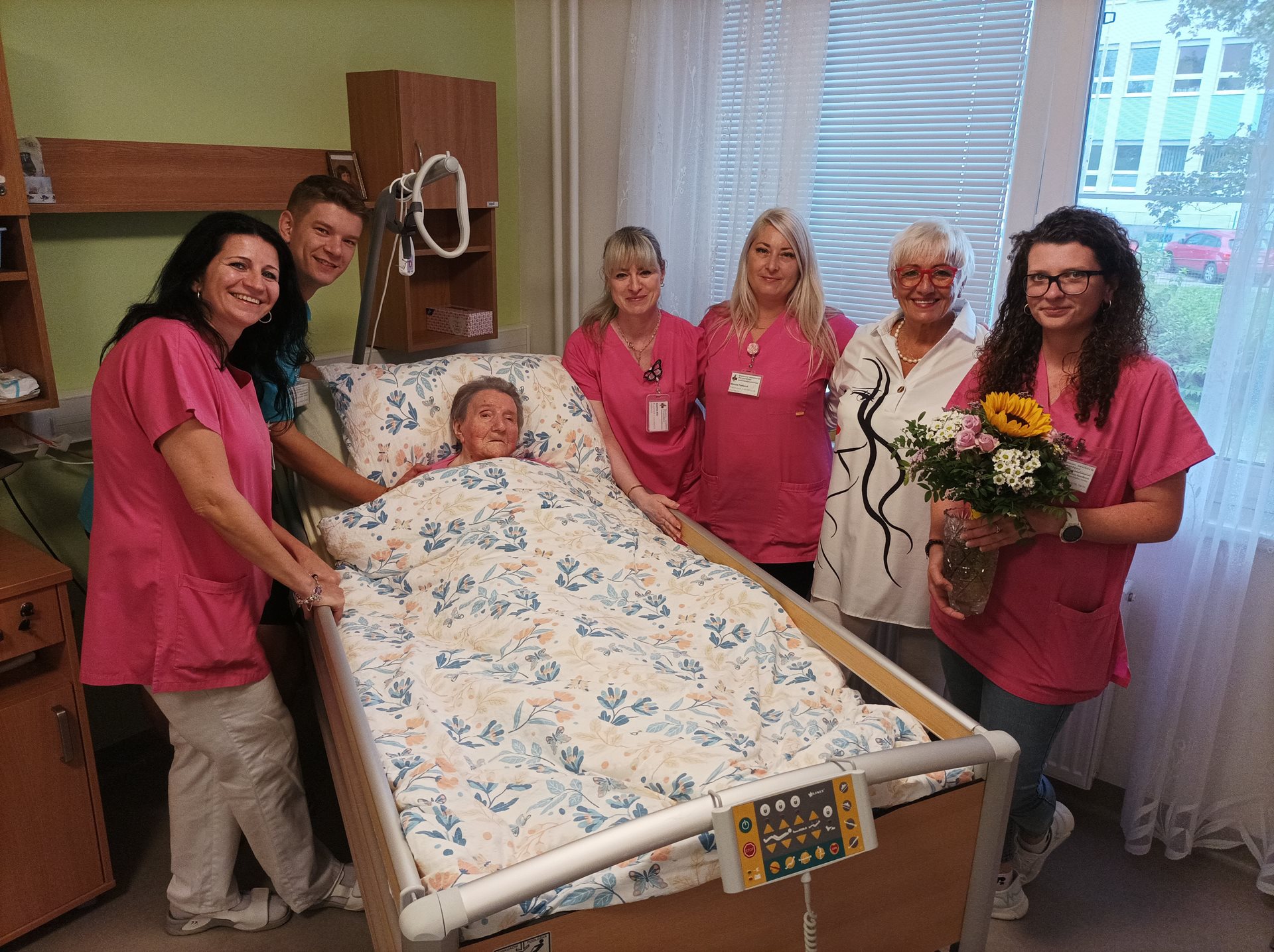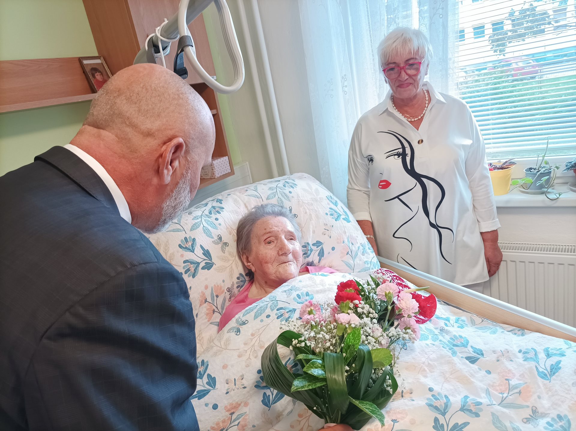 Dne 28.9.2024 oslavila uživatelka paní Františka 101.let. Poblahopřát jí přišel osobně pan primátor Mgr. František Jura MBA, LL.M., ředitel DS Prostějov pan Mgr. Marek Němec, ošetřující personál, který o uživatelku dlouhodobě s láskou pečuje a dcera uživatelky s rodinou. Oslavenkyně si dnešní den užila, ochutnala výborný dort a převzala spoustu darů, které gratulanti přinesli.Všichni oslavenkyni popřáli spoustu dalších spokojených let.