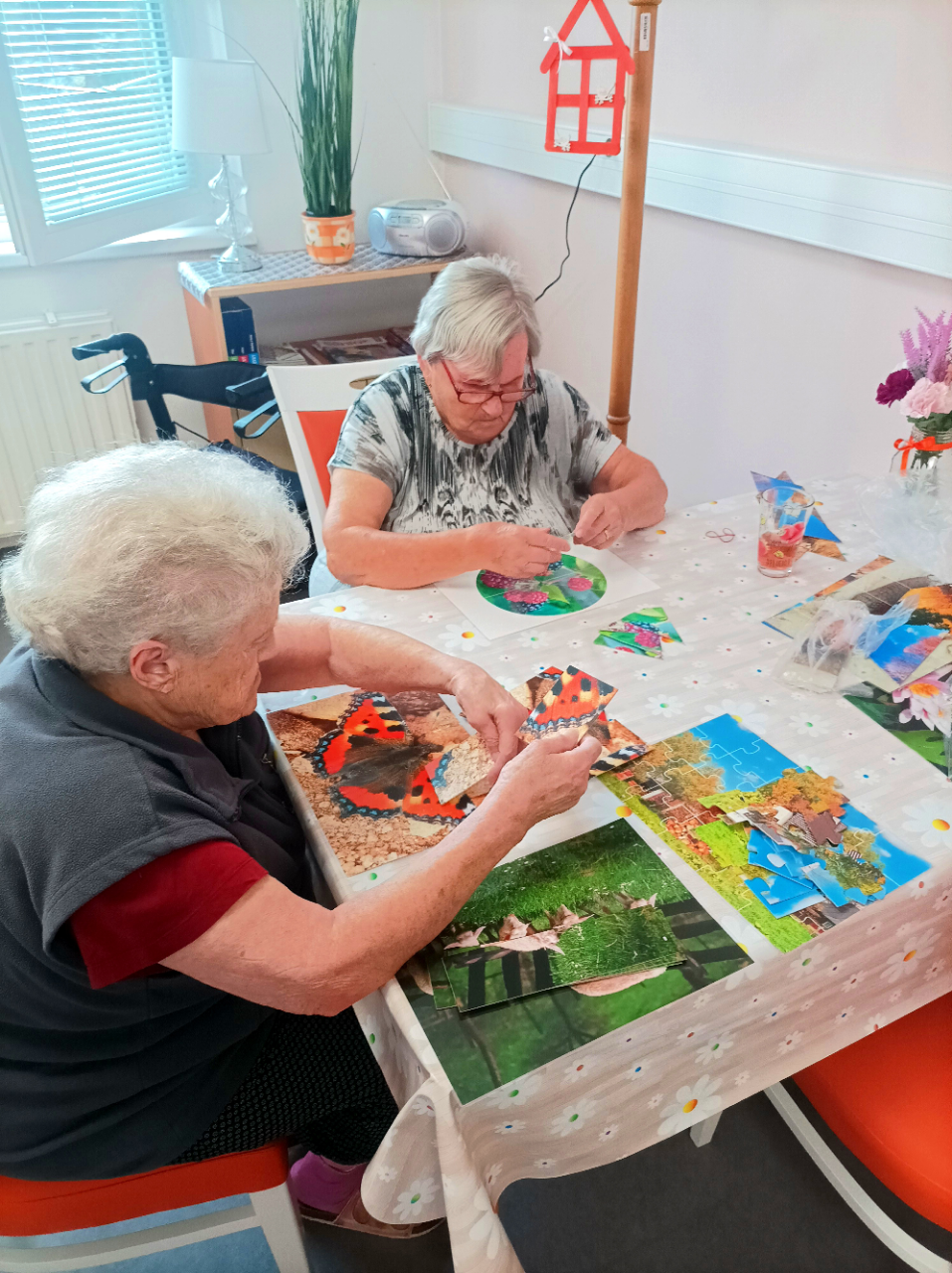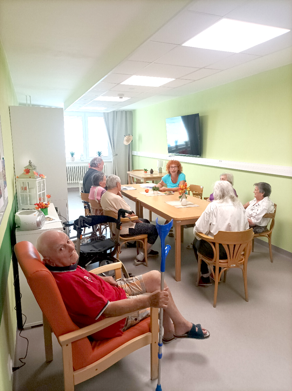 Aktivizace nyní probíhají v dopoledních hodinách v nových prostorách zálivů jednotlivých odděleních, ale i každý den odpoledne na pravidelných skupinách v aktivizační místnosti v přízemí. Nabízíme uživatelům čtení a povídání, zpěv, hraní společenských her, poslech hudby, cvičení, trénik smyslů a paměti, výrobu různých dekorací, dárků, keramiky, ruční práce a tvorbu domácích sirupů, marmelád, sušených čajů, vonných olejů,či dárků. Oblíbená je i zahradní terapie, krmení rybiček v jezírku, poslech audioknih, nebo pečení. Pro imobilní uživatele je vhodná bazální stimulace za pomocí vibrační techniky, která je velmi oblíbená, promítání interaktivním přistrojem 4 IMAGE, či individuální návštěvy aktivizačních pracovníků na pokojích. Nabídka vycházek za příznivého počasí je samozřejmostí.