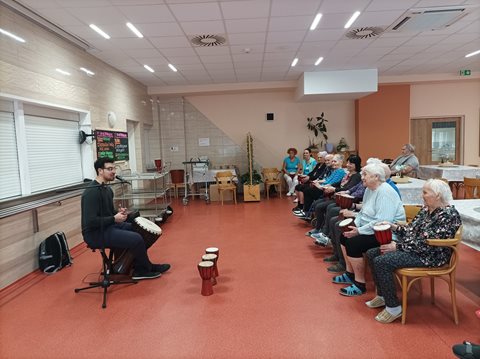 Dne 11.3.2024 se uskutečnila v Domově seniorů Prostějov p.o. již druhá Bubnová terapie, která dokázala, že bubeníkem může být každý, kdo má smysl pro rytmus, melodii a dokáže to vyjádřit právě tímto způsobem. Věk, prostě není překážkou. Všichni zúčastnění si to náležitě užili.
