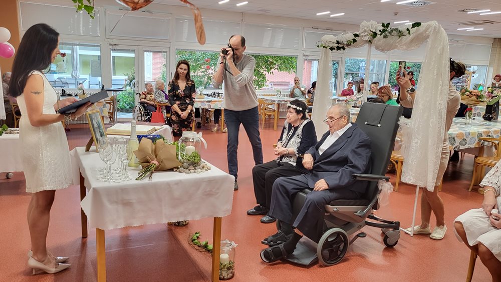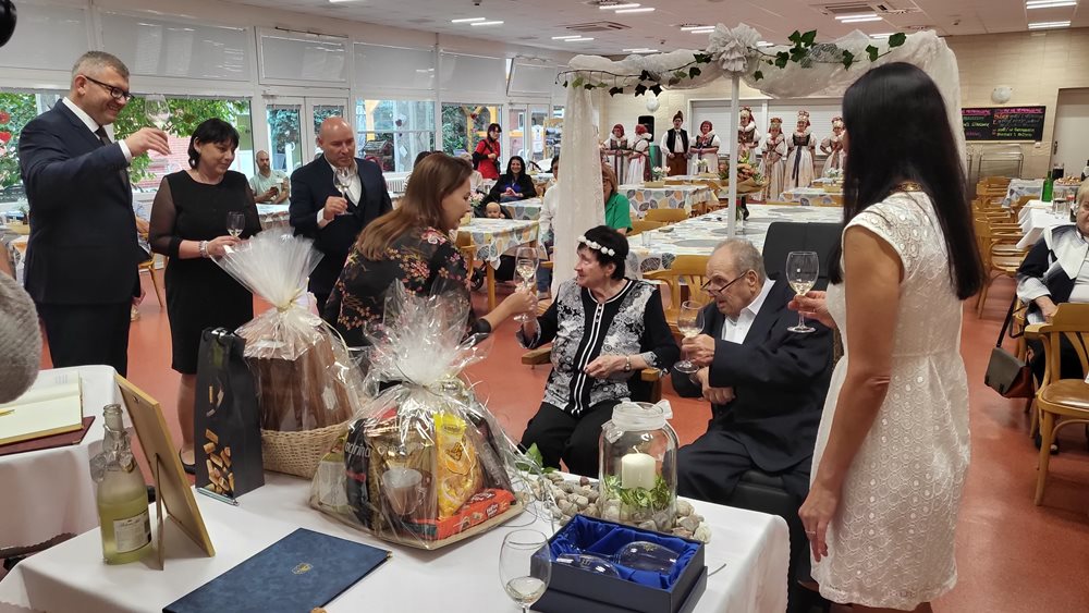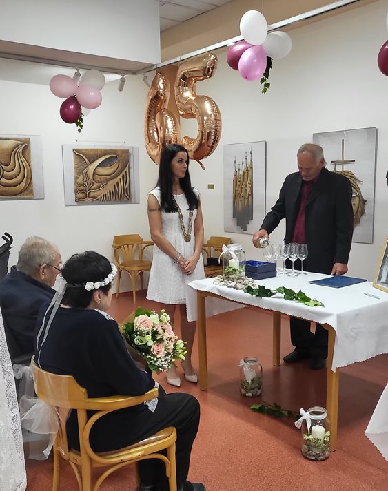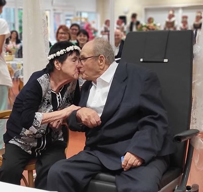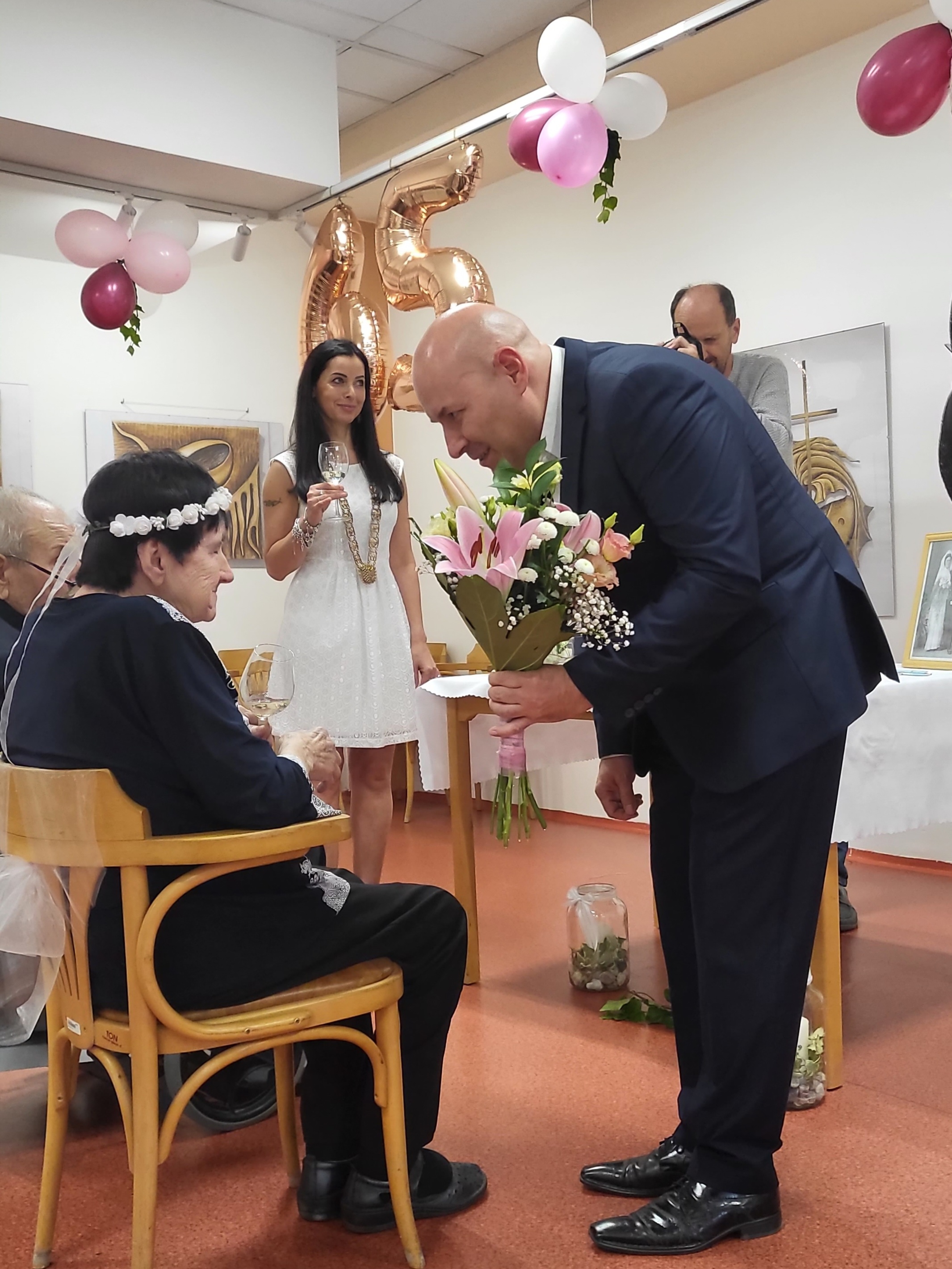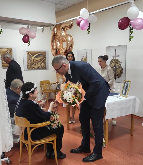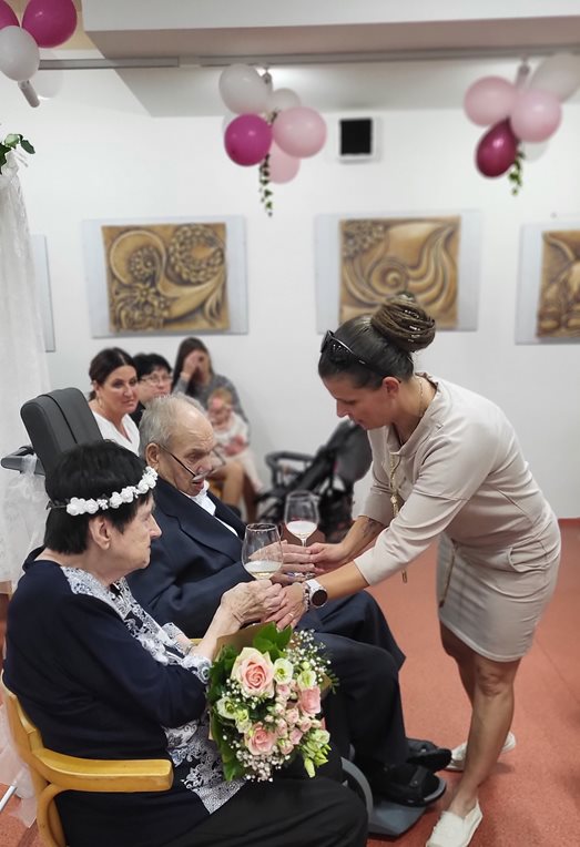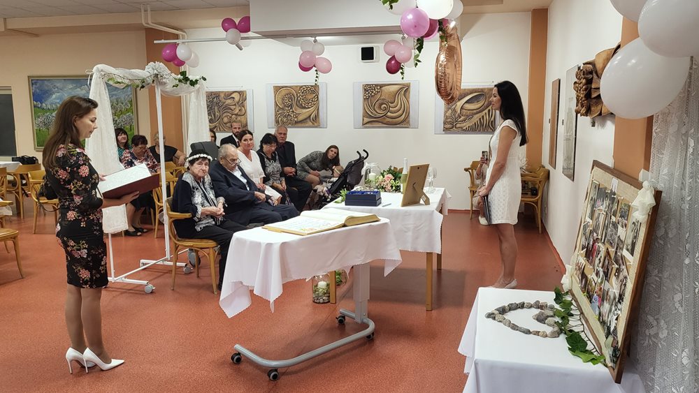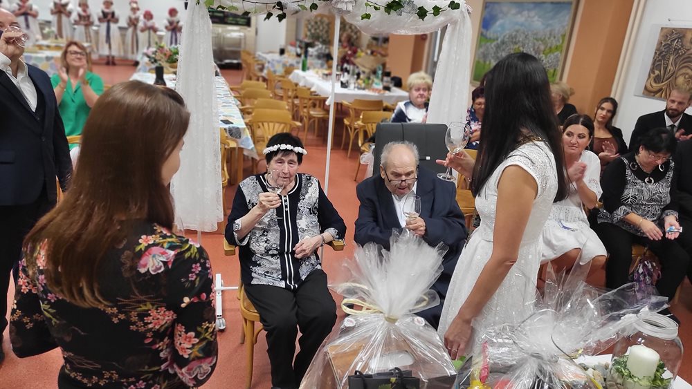 Dne 14.10.2023 si manželé Szabovi stvrdili opakovaně své ,,ANO", které si dali již před 65. lety. Velké přípravy, spousta práce, všech zaměstnanců a rodiny, ale výsledek opravdu stál za to. Díky tomu se v sobotu 14.10.2023 ve 13 hodin v Domově seniorů Prostějov p.o. konala kamenná svatba manželů Szabových. Po neuvěřitelných 65. letech si znovu řekli své ,,ANO"a potvrdili si tak po letech oficiálně svůj manželský slib. Tuto slavnostní atmosféru podtrhla účast pana 1.náměstka OLK Mgr. Ivo Slavotínka, ředitele Domova seniorů p.o. pana Mgr. Marka Němce a spousty zaměstnanců, rodiny a uživatelů, kteří přišli manžele podpořit. Krásné vystoupení národopisného souboru Mánes jim udělalo velikou radost.