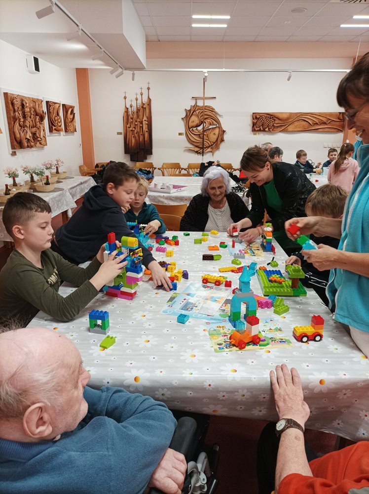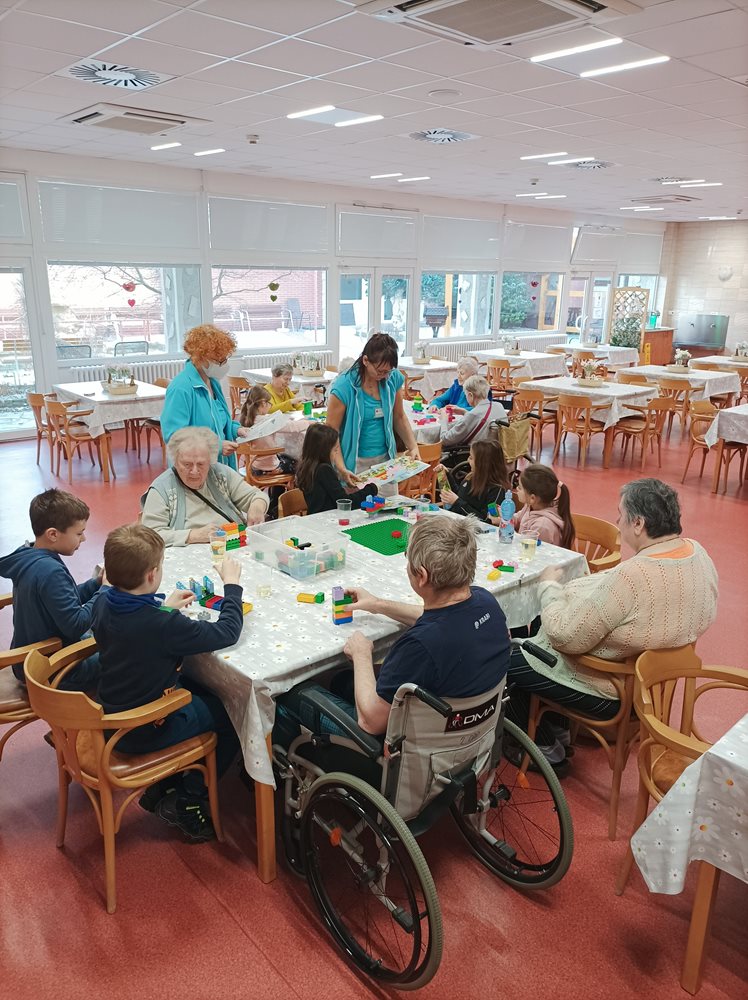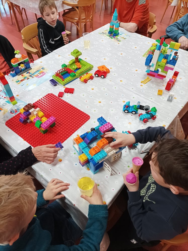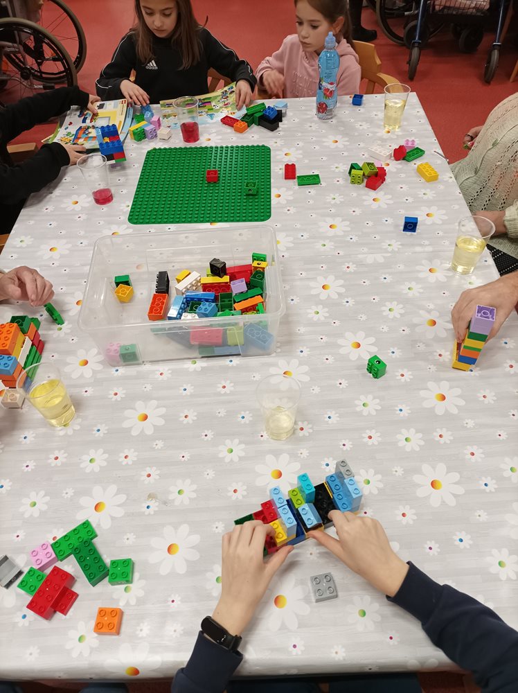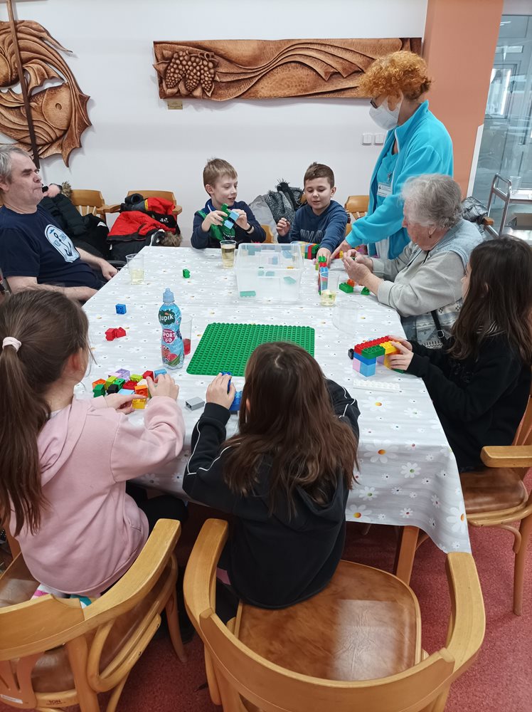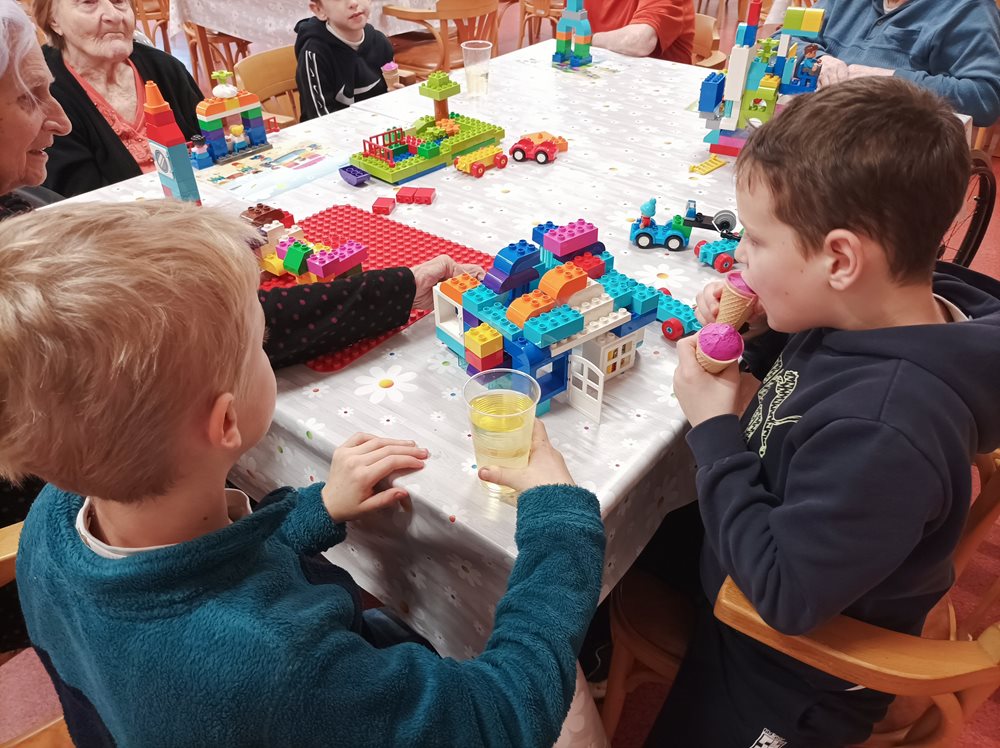 Dnes jsme společně s dětmi ZŠ Železného stavěli z LEGA, které jsme obdželi v projektu Ninin sen - senioři staví s dětmi. Děti se na naše seniory opravdu těšily a protože se znají z minulých let, již opadl veškerý ostych a dokážou společně vytvářet krásné věci.