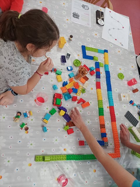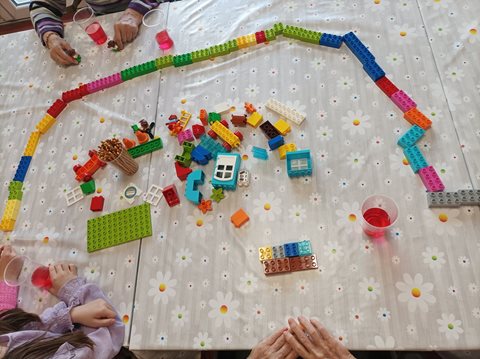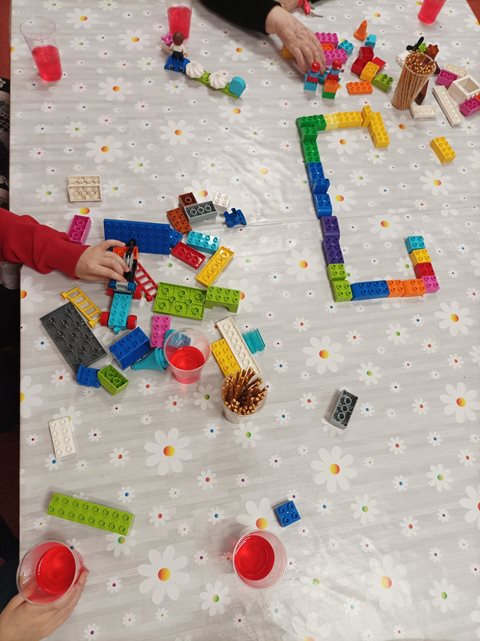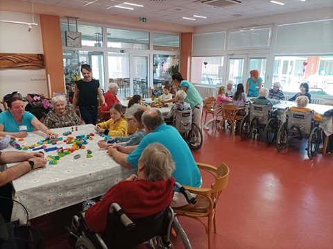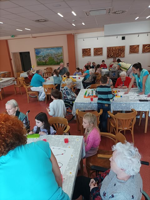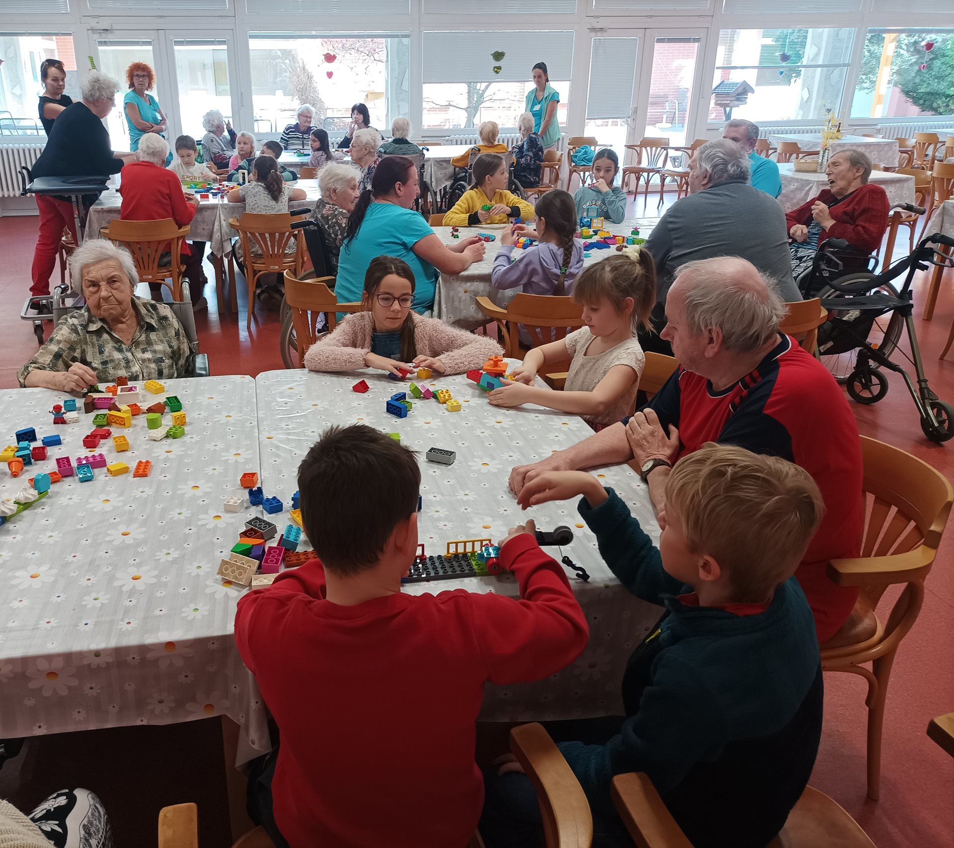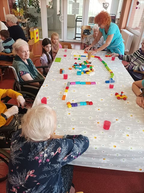Děti a senioři společně trávili čas stavěním z LEGA.Obě věkové skupiny se aktivně zapojovaly a společnými silami plnily zadané úkoly.