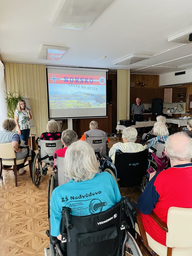 Dnes si uživatele Domova seniorů Prostějov vyslechli přednášku manželů Poulíkových na téma Norsko, na kterou se velmi těšili. Manželé Poulíkovi popisovali svou cestu, zážitky a pocity, které při cestování prožili a čemu všemu byli nuceni čelit. Přednáška byla, jako obvykle velmi zajímavá a poučná.