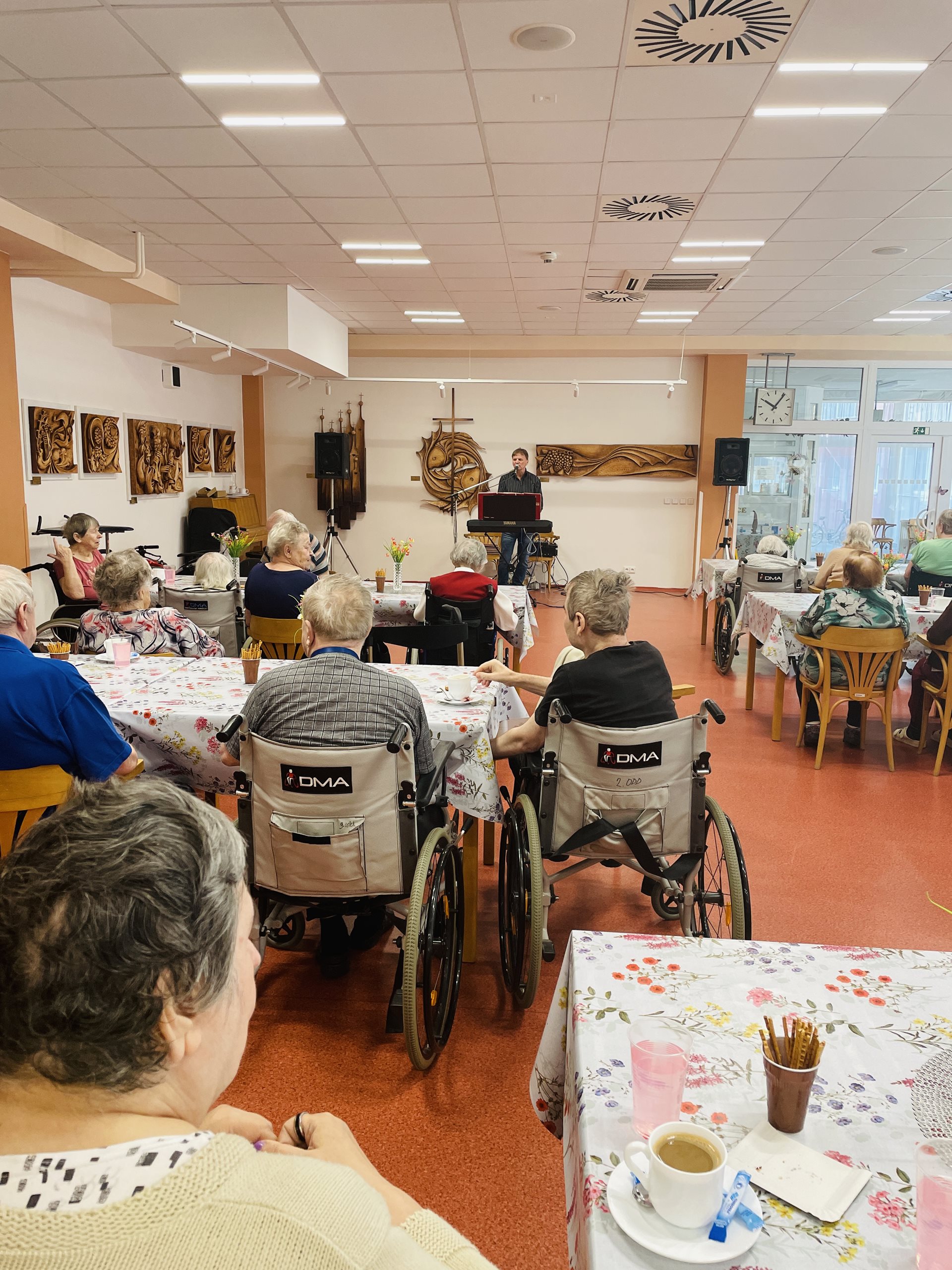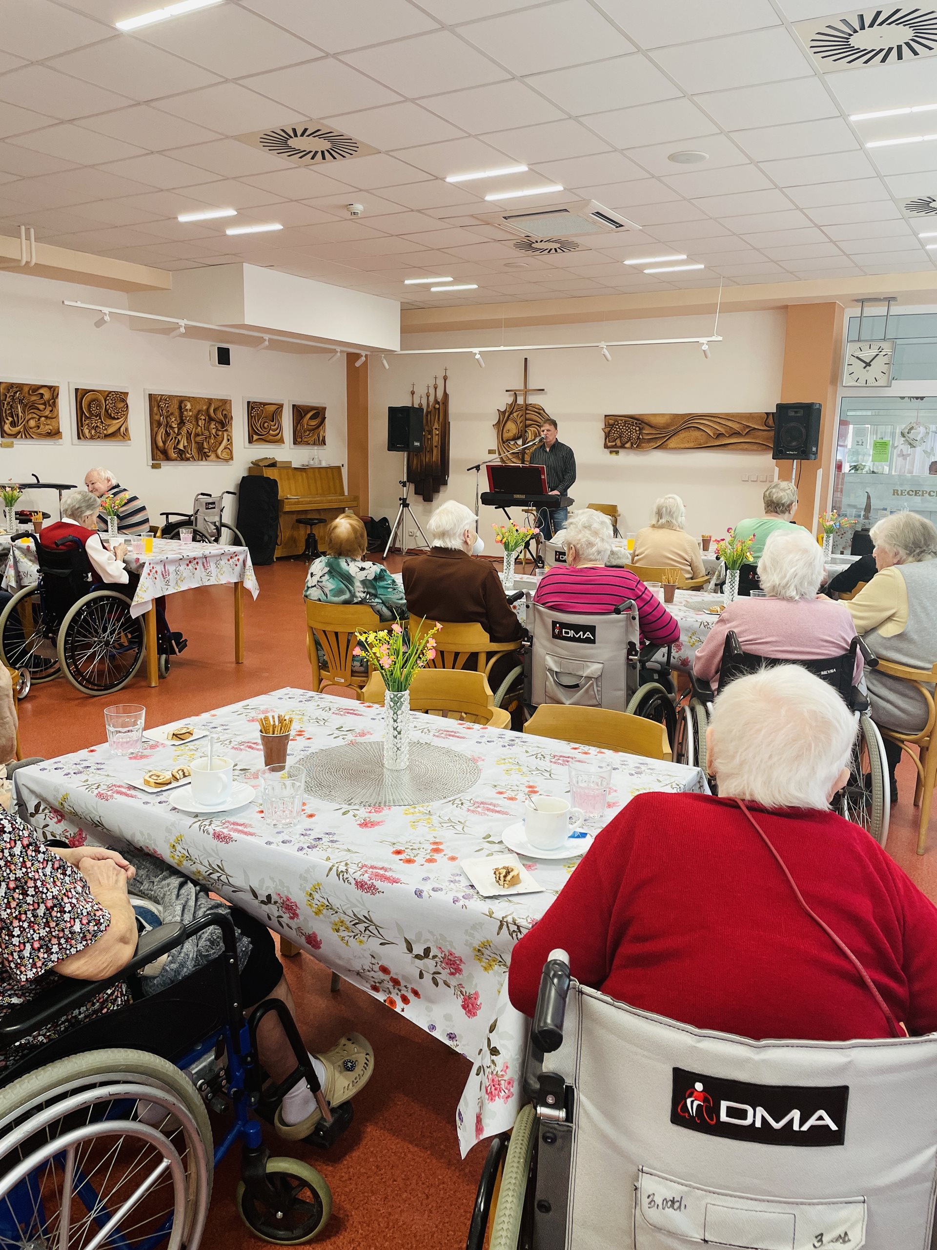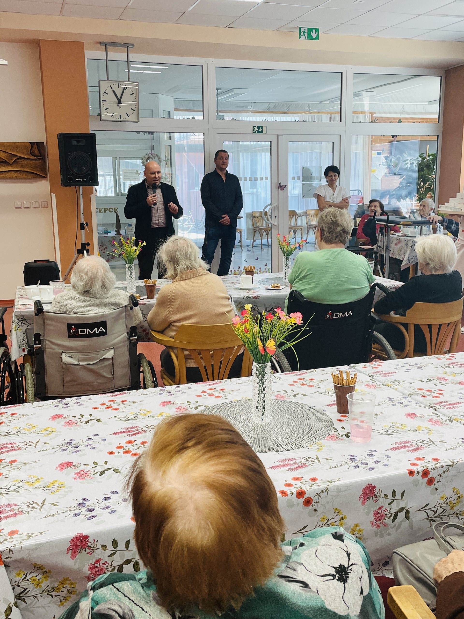 Dne 7.3.2025 naši uživatelé a zaměstnanci oslavili MDŽ krásným kulturním vystoupením skupiny ELVISBAND. Pan ředitel Mgr. Marek Němec popřál všem ženám k svátku a rozdal jim malý dáreček v podobě čokoládového překvapení.