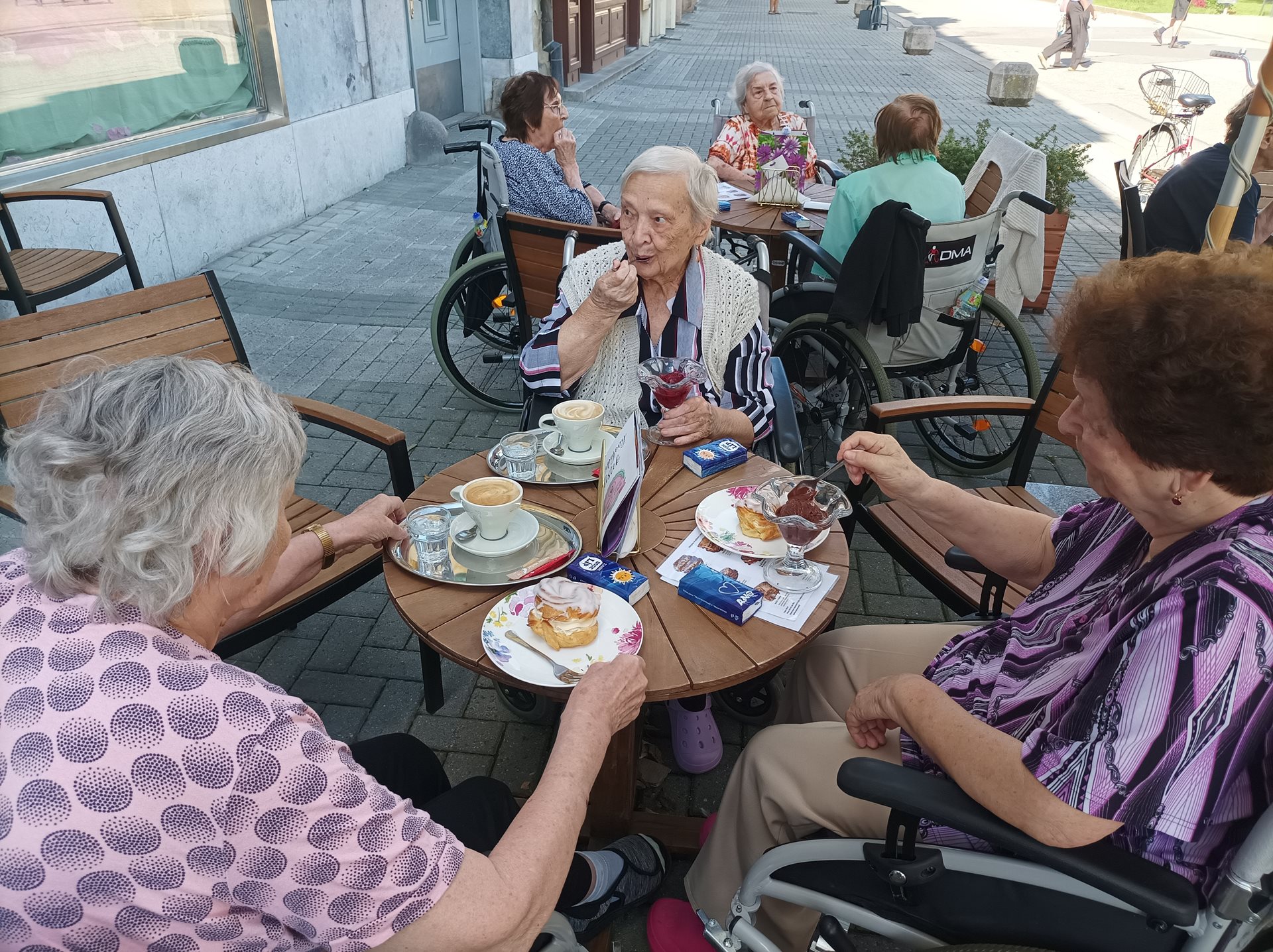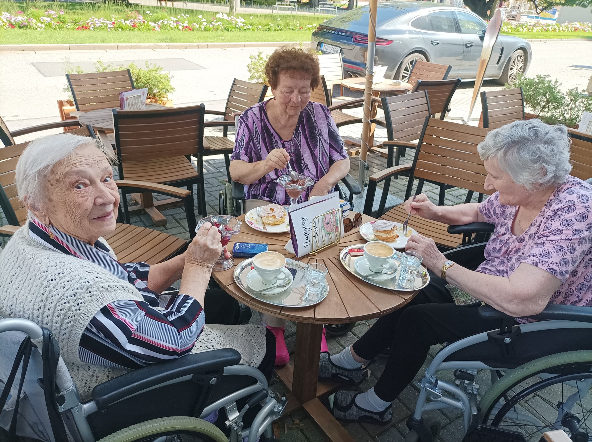 Výlet na náměstí - naši uživatelé navštívili cukrárnu, kde si pochutnali na výborné kávě, zmrzlině a zákuscích. Krásné počasí nám přálo a už se těšíme na příště.