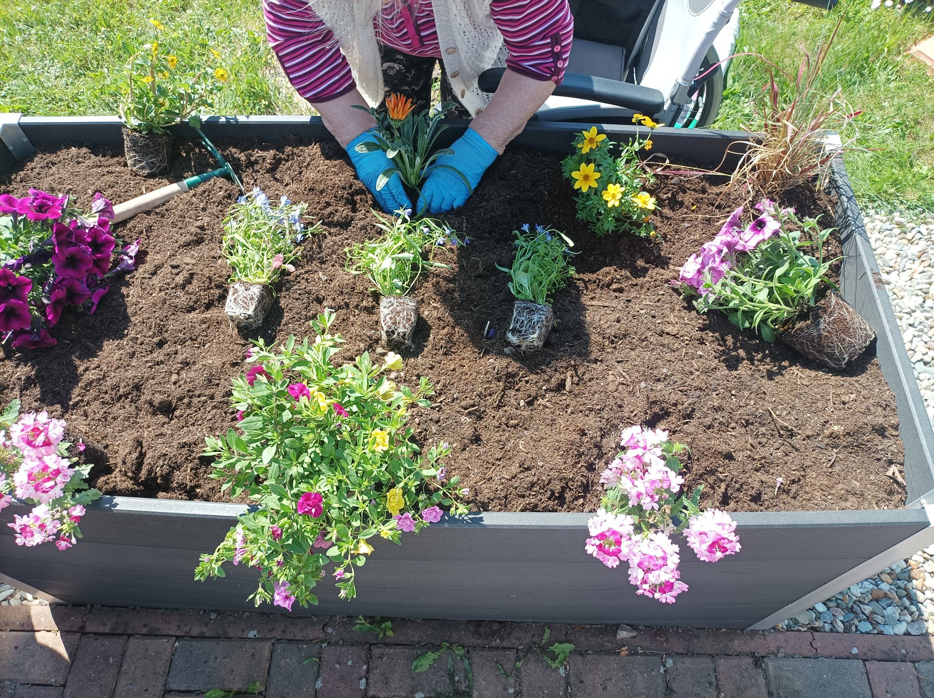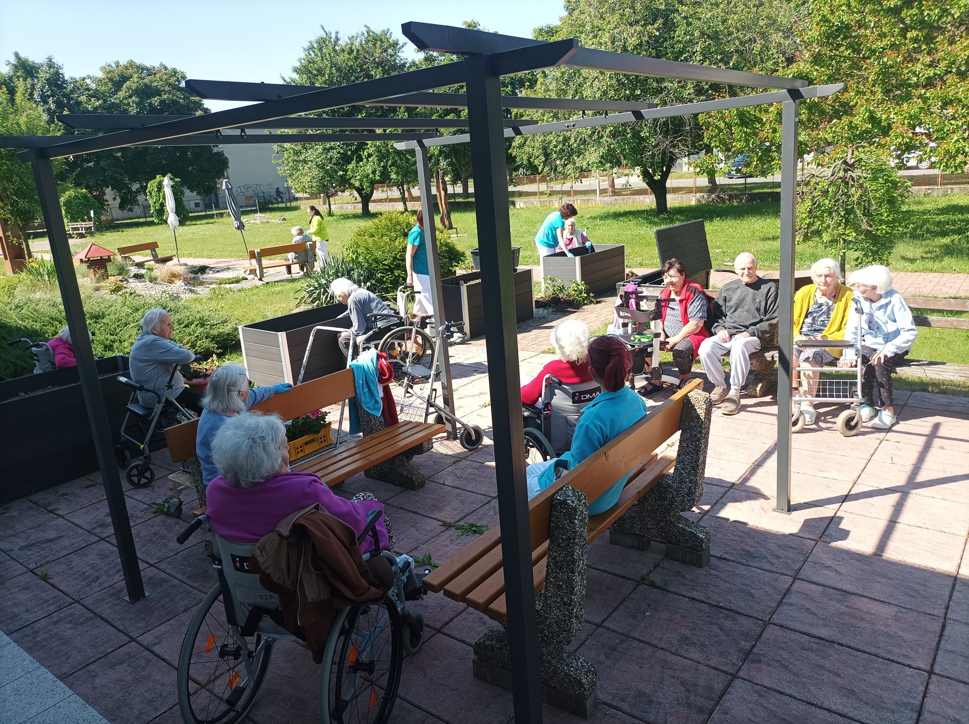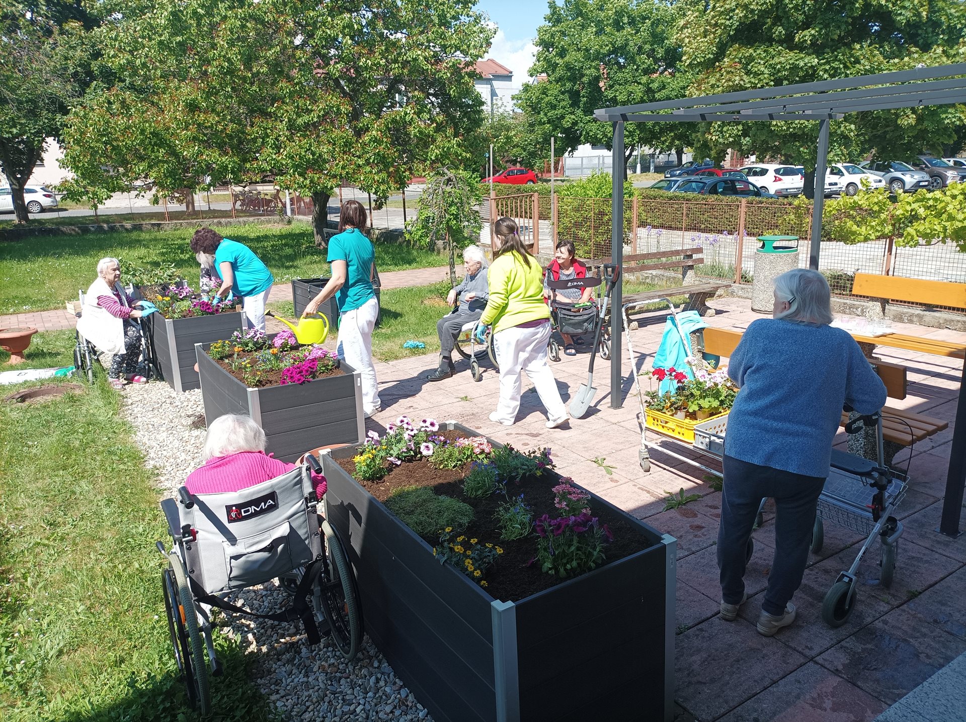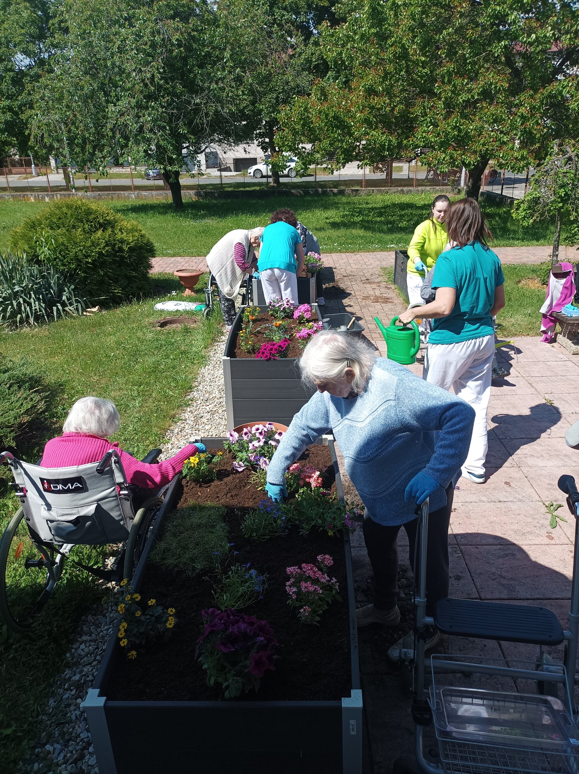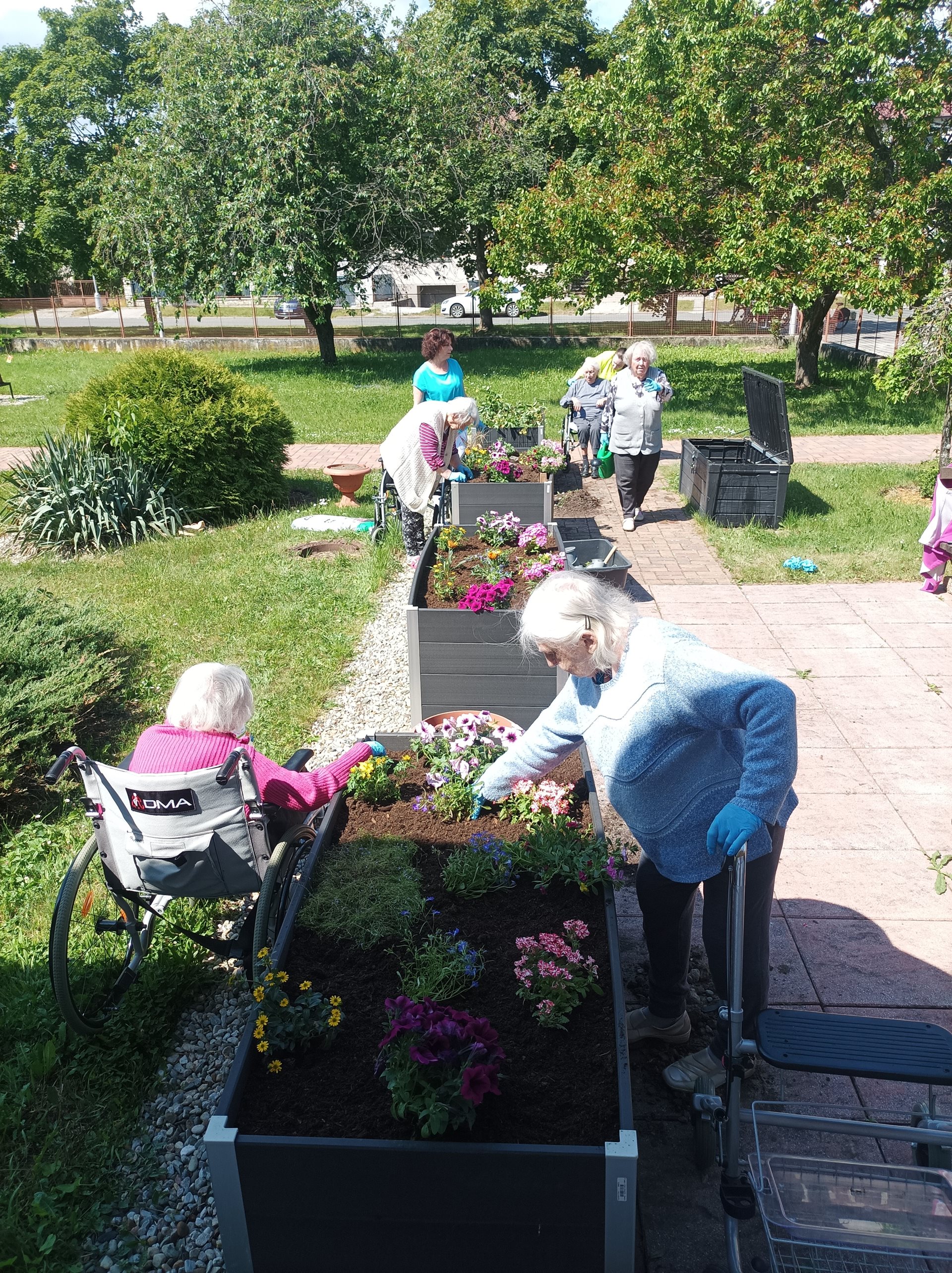 Zahradní terapie je jednou s oblíbených činností uživatelů Domova seniorů Prostějov, p.o., proto i letos proběhlo sázení letniček a bylinek do vysokých truhlíků. Senioři mají tuto činnost ve velké oblibě a celé léto se o kytičky pečlivě starají. Pěstují si i svoje jahody a bylinky, které mohou využívat ke zpestření různých pokrmů skvělé domácí kuchyně. Věříme, že všichni návštěvníci a rodinní příslušníci ocení tuto činnost a potěší se společně s námi krásnými barvami kytiček v naší zahradě.