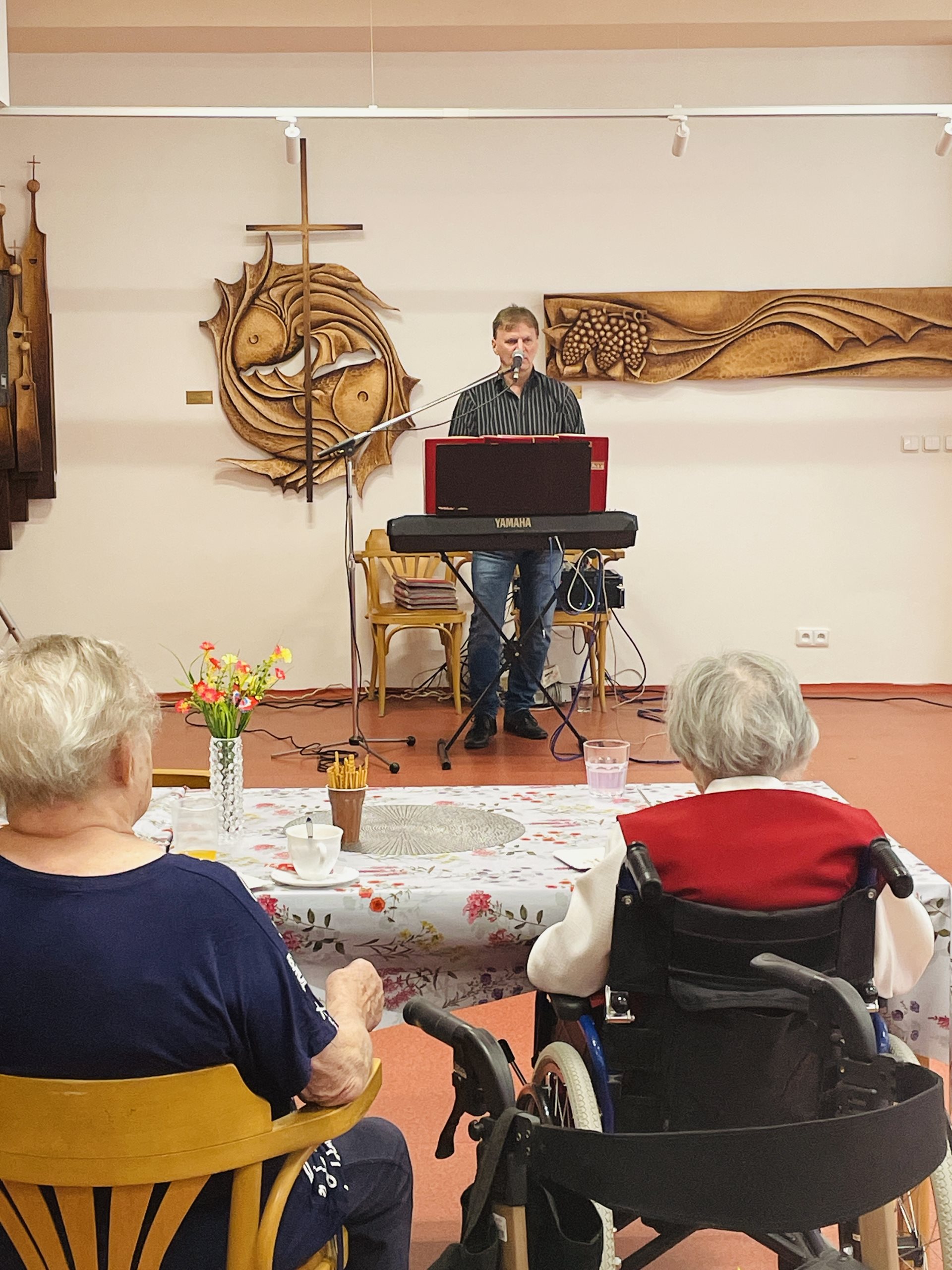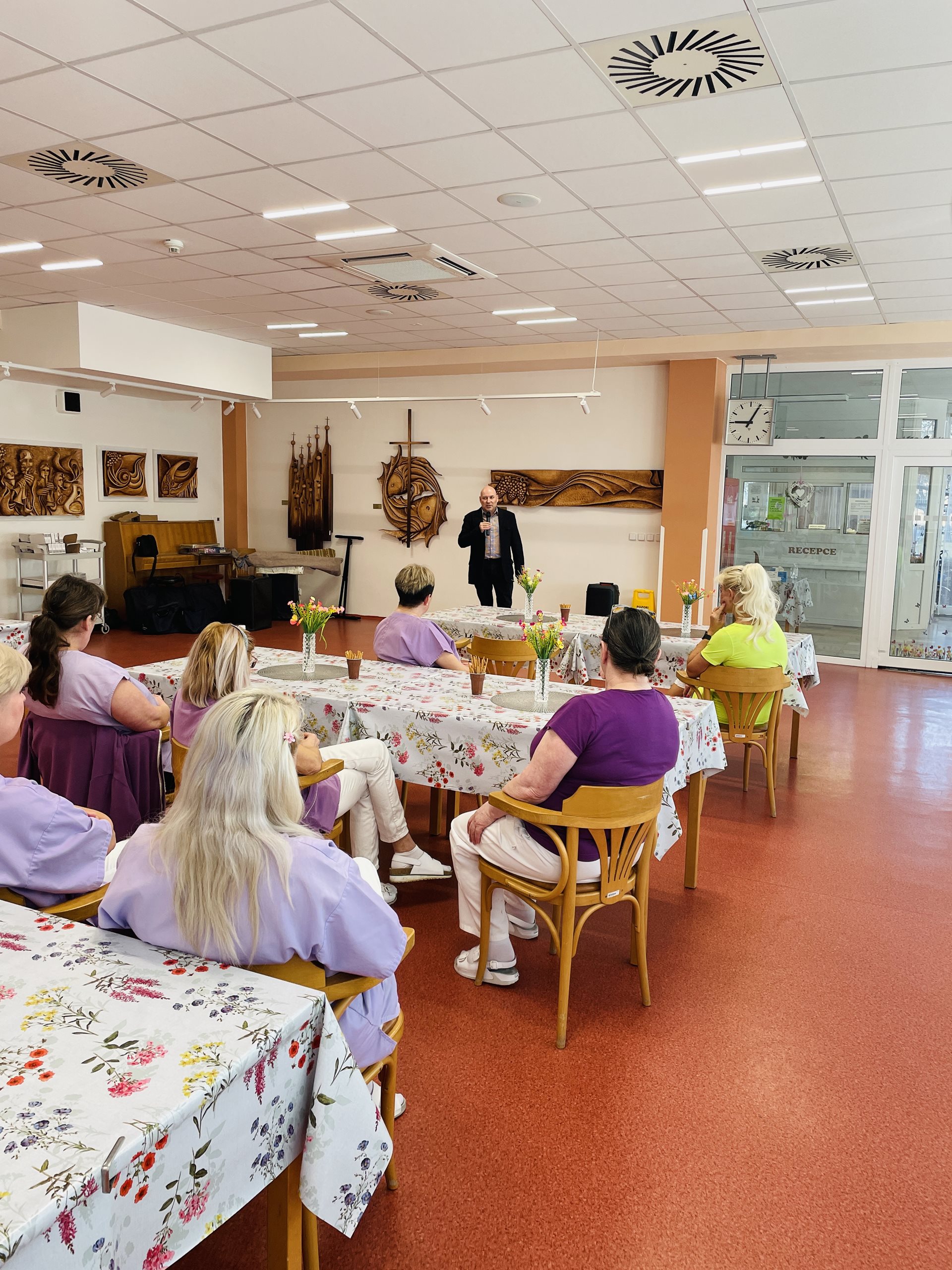 Dne 7.3.2025 naši uživatelé a zaměstnanci oslavili MDŽ krásným kulturním vystoupením skupiny ELVISBAND. Pan ředitel Mgr. Marek Němec popřál všem ženám k svátku a rozdal jim malý dáreček v podobě čokoládového překvapení.