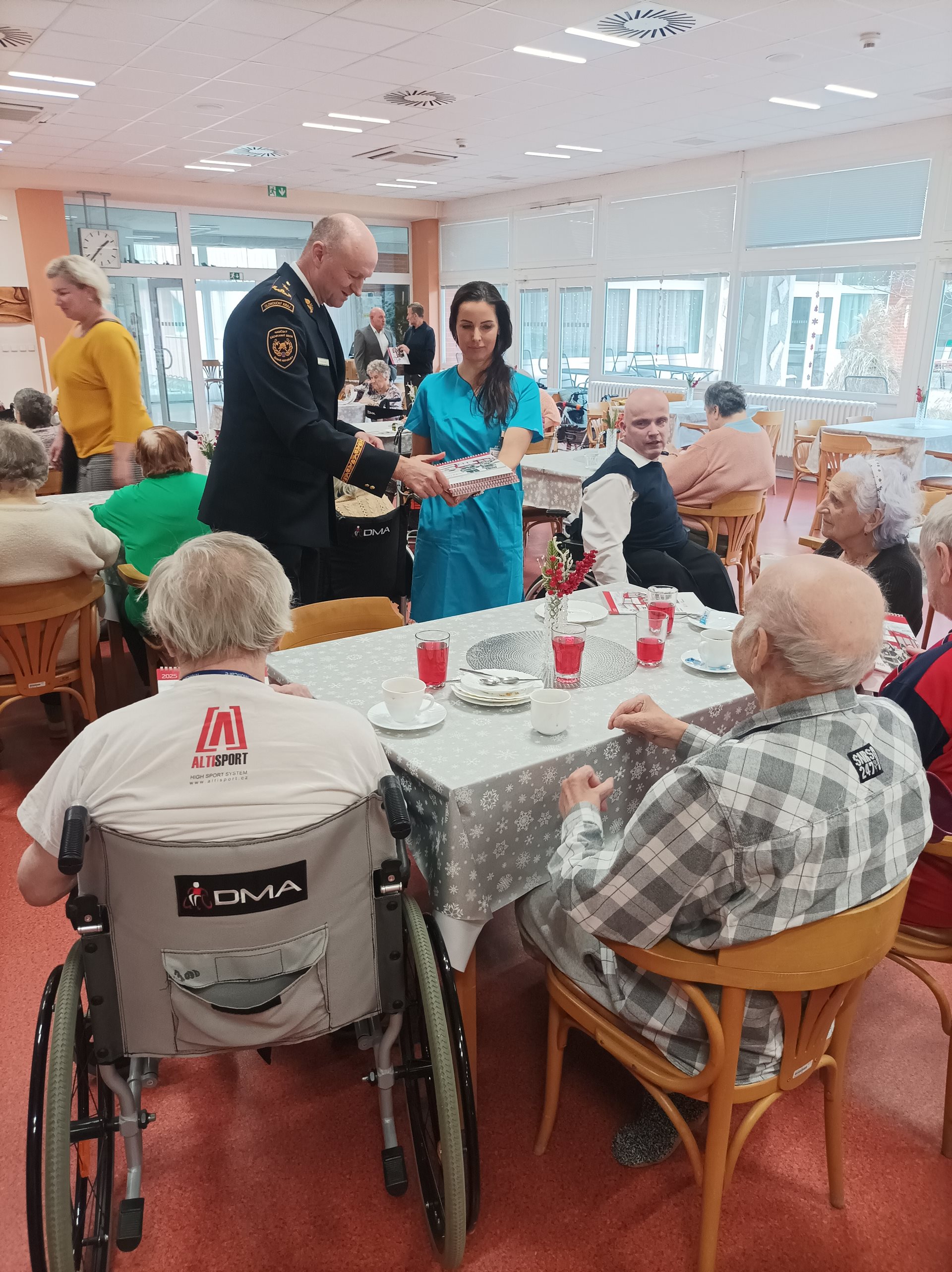 Dne 21. 01. 2025 navštívil Domov seniorů Prostějov p.o. náměstek hejtmana Olomouckého kraje pro sociální věci a záležitosti seniorů JUDr. Martin Škurek, Ph.D. a brigádní generál Ing. Karel Kolářík, ředitel Hasičského záchranného sboru Olomouckého kraje. Po uvítání čestných hostů panem ředitelem Mgr. Markem Němcem, předal pan náměstek JUDr. Martin Škurek, Ph.D. s panem brigádním generálem Ing. Karlem Koláříkem uživatelům krásné stolní kalendáře, popovídali si s nimi u kávy, domácí zmrzliny a zákusku. Poté se věnovali prohlídce Domova seniorů, kterou je provázeli vedoucí pracovníci jednotlivých úseků.